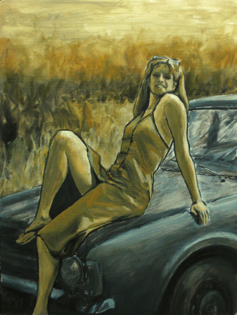 Vrouw Woman Natuur Jonge Girl Auto Car Jurk Ford Jurkje Jong Studie Zonnebril Nature Young Dress Poseren Motorkap Sunglasses Slipper Pose Leunen Lean Zomerjurk Taunus