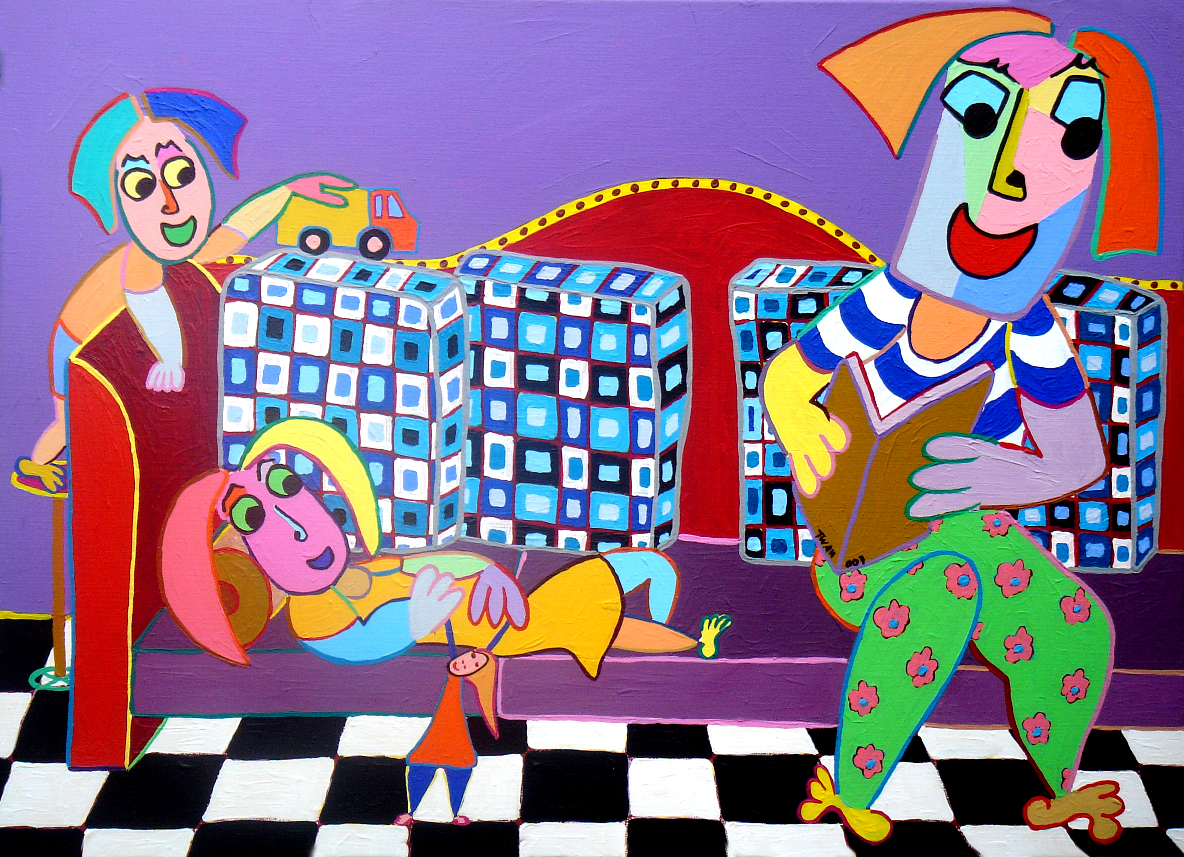 Vader leest voor op de bank aan de kinderen die ondertussen doorspelen Te huur voor 23,10 Euro per maand