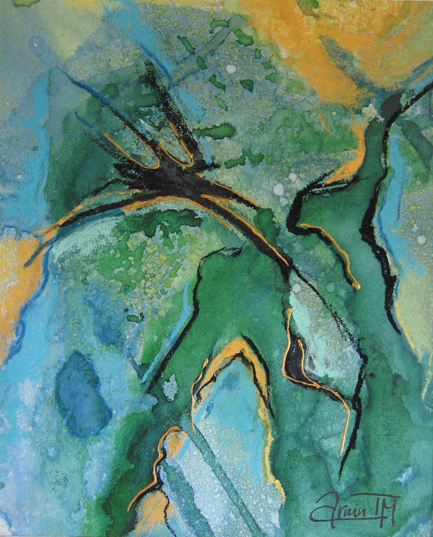 Kosmos serie. Ingelijst in parelgroene passepartout, achter glas in lijst.