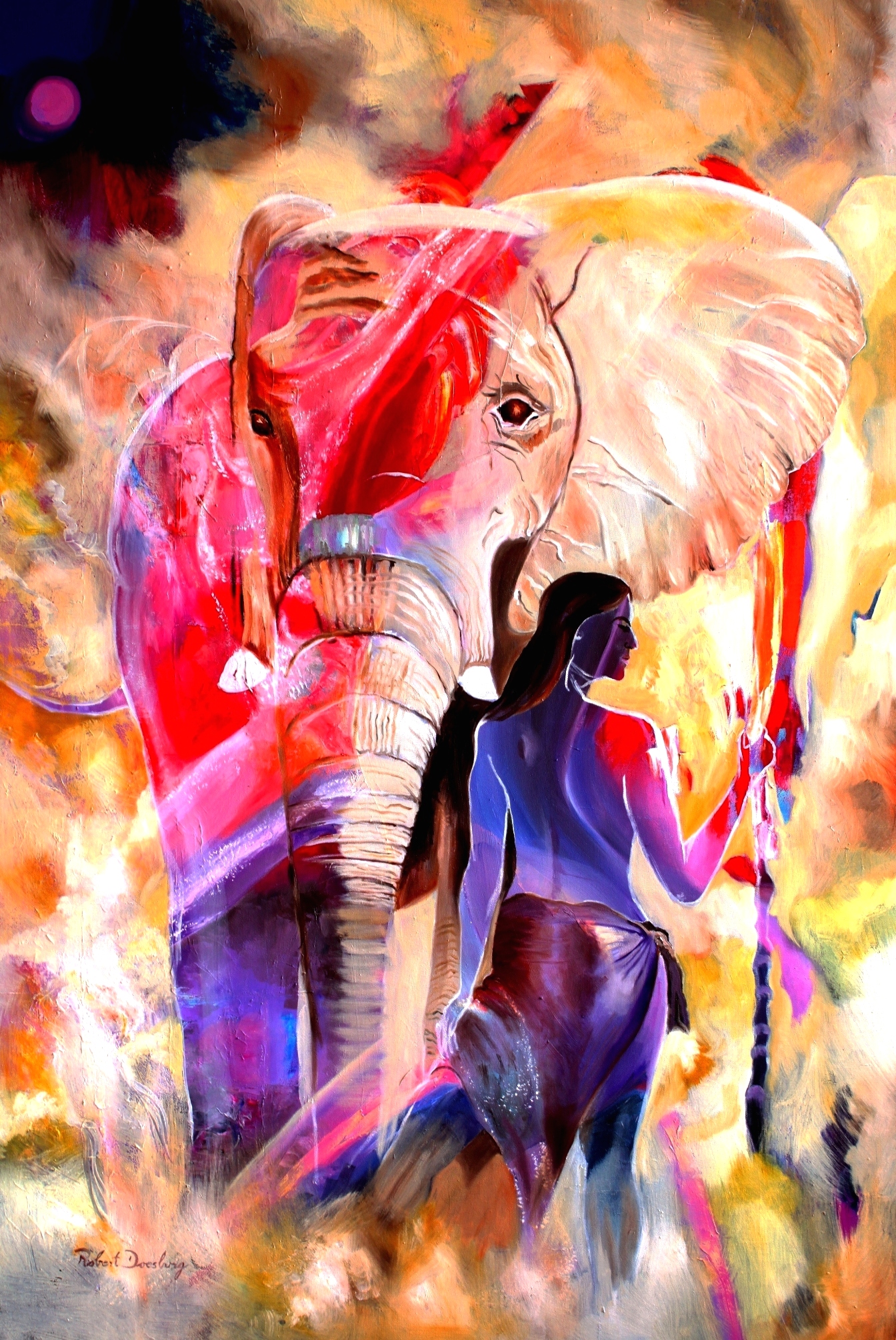 Yellow Africa Elephant Woman Nude Oilpainting Love Purple Sky Robert Life Moon Nature Animal Sand Doesburg