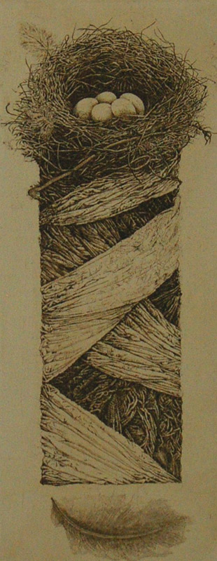 Nest Zuil Birds Eggs Veer Eieren Vogelnest Feather Pillar Wrapped Omwindsels