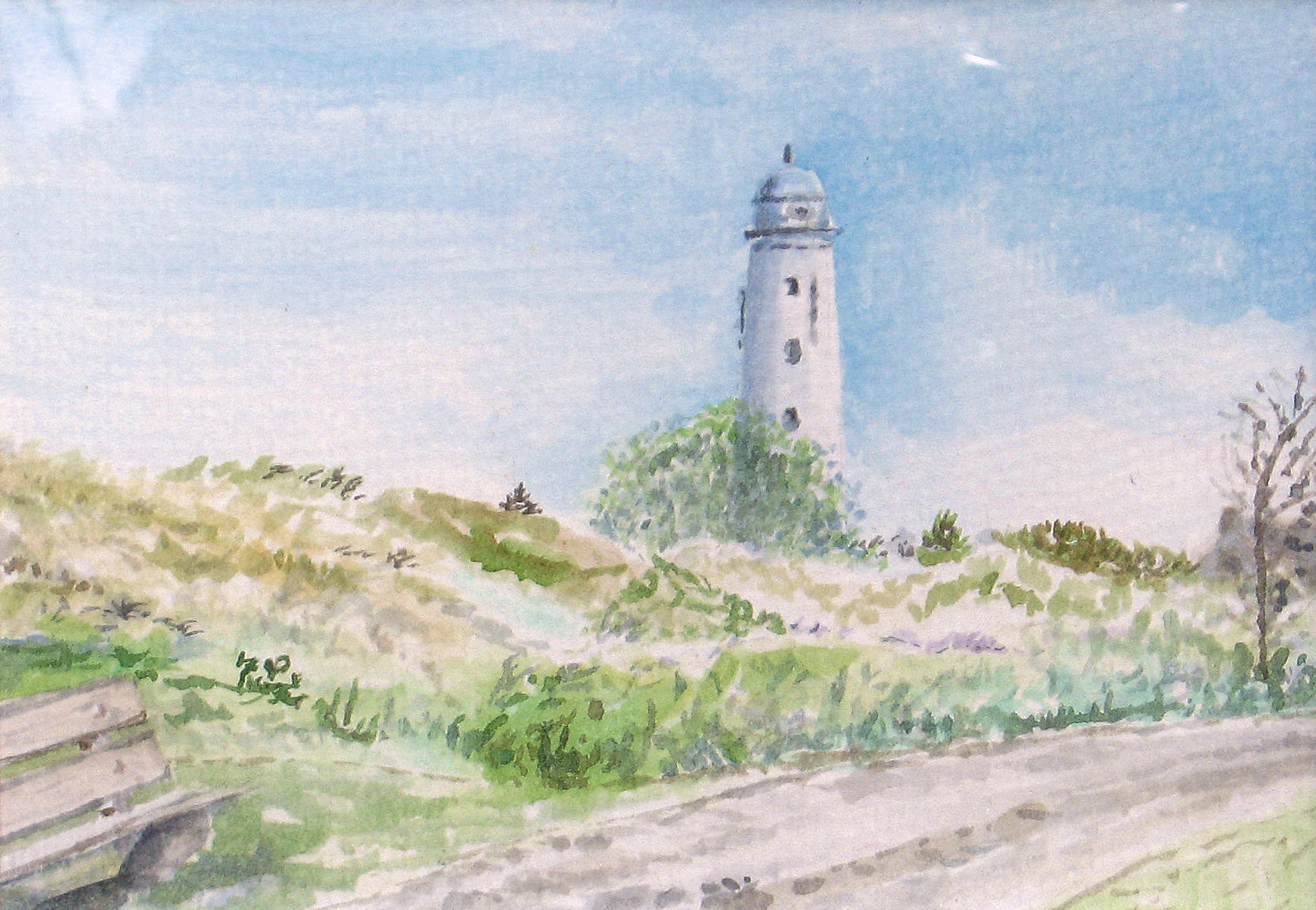 Vuurtoren. Aquarel. Inclusief lijst (niet afgebeeld). Verkocht.