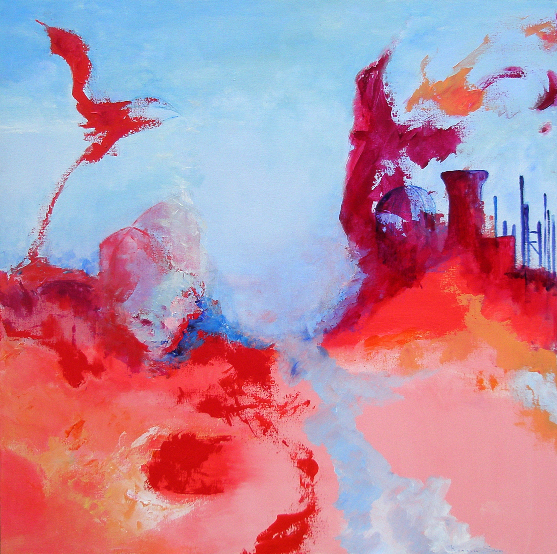 Ze transformeert de natuur in een eigen kleurrijke taal met veelal meerdere verre horizons en swingende elementen. Ze is een colorist in hart en nieren. Het zijn fata morgana’s die ontstaan uit diepe herinneringen aan zowel haar wereldreizen als haar behoefte om de dingen van alledag te transformeren in een natuurbeeld dat haar rust en structuur geeft.