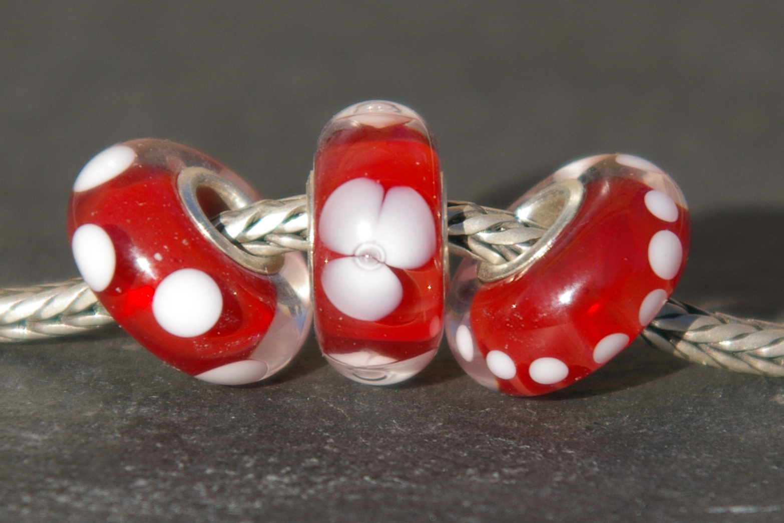 Handgemaakte glasbedels uit eigen atelier voor aan uw Pandora, Tedora, Troll etc. (past op elk systeem). De bedels zijn gemaakt van Moretti glas uit Murano (Venetië) en zijn ingezet met een 925 zilveren kern.