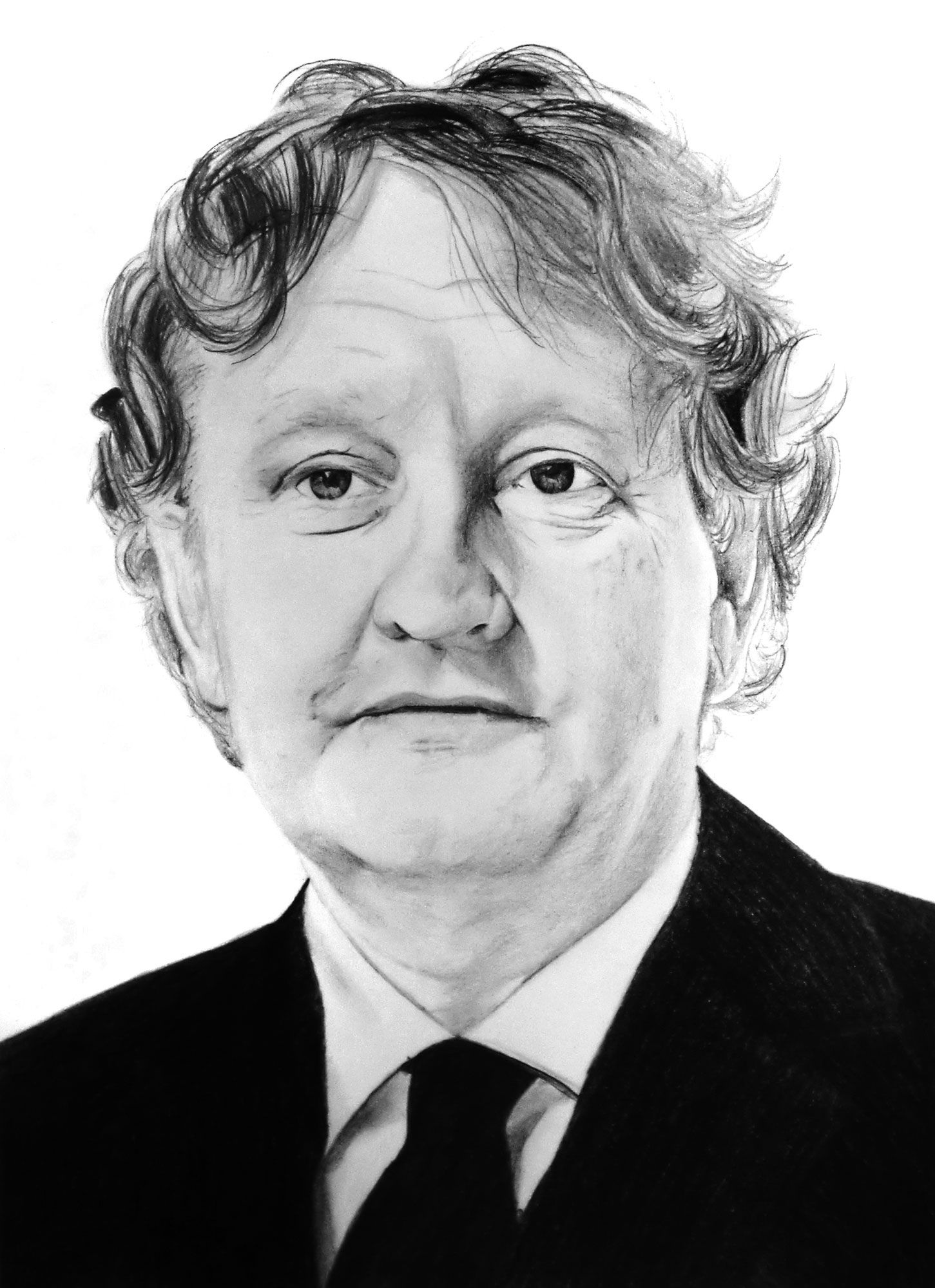 Portret van oud-minister Eberhard van der Laan, gemaakt in grafiet en monolith potlood. Dit portret is als geschenk gegeven aan de minister, ter gelegenheid van het officieel openen van "Kom in de Kas 2010".