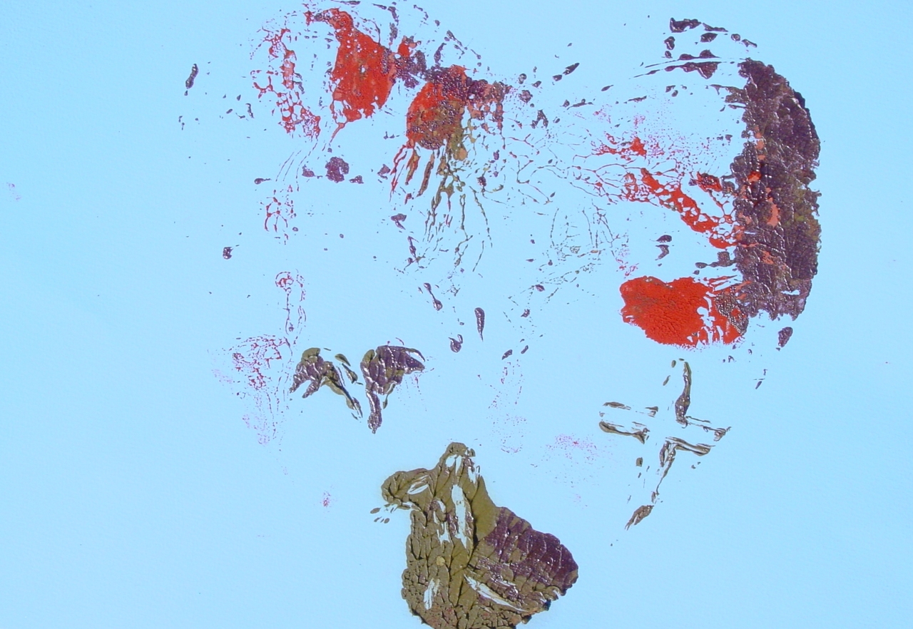 Afdruk gemaakt van houten hart met olieverf op papier