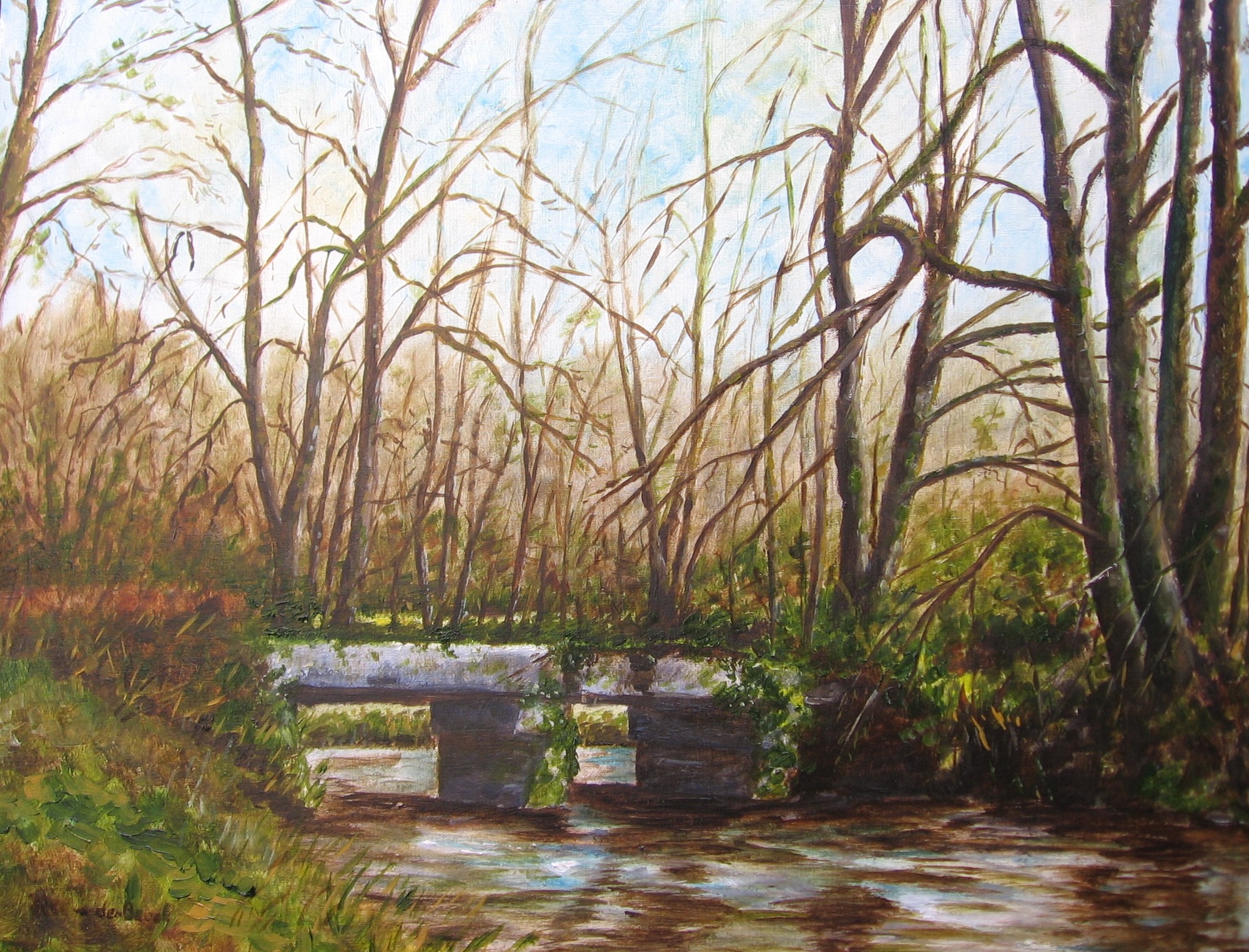 Landschap Frankrijk Olieverf Beek Bruggetje Limousin Creuse Laroseille