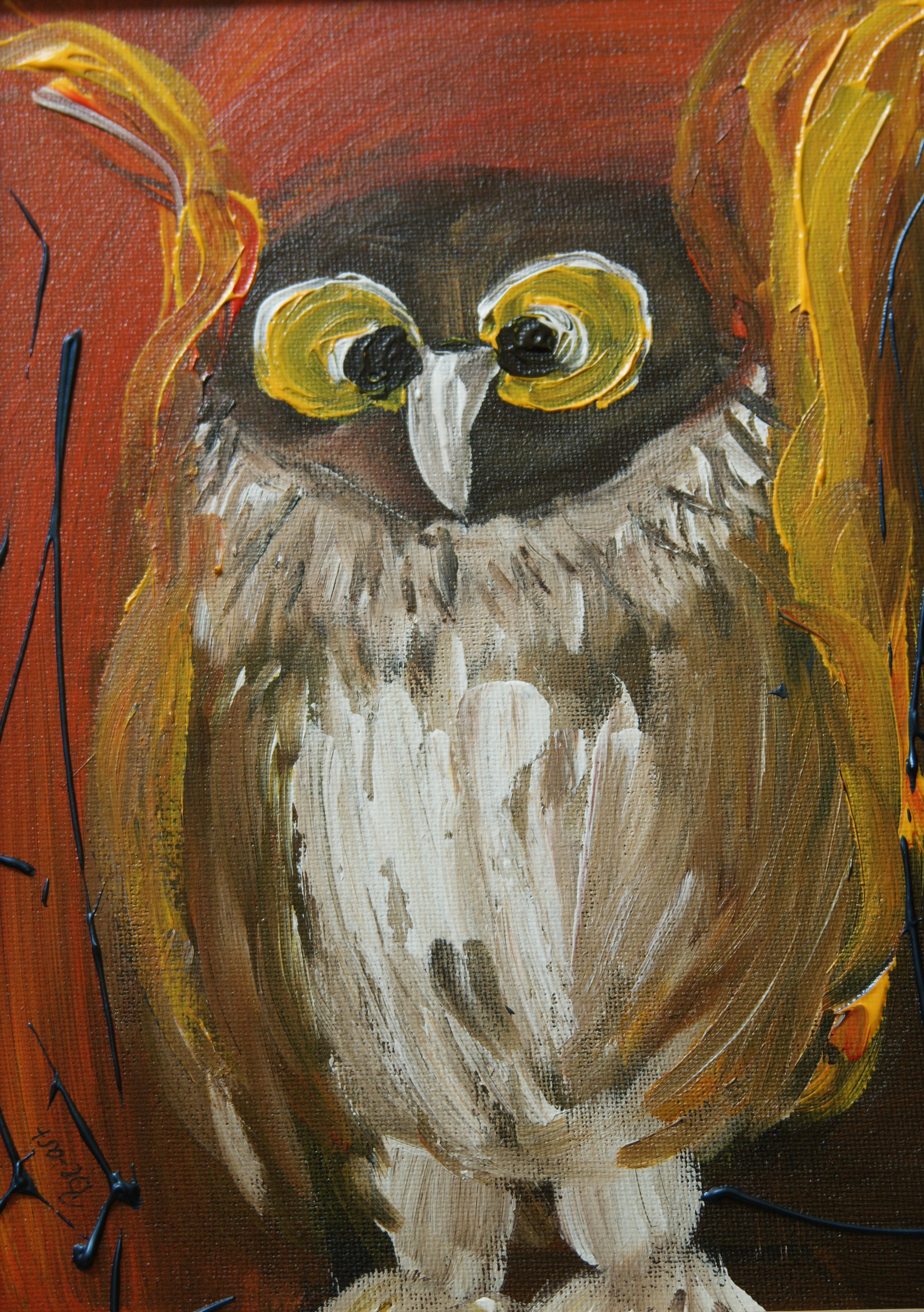 Oranje Geel Acryl Art Uil Be Visser Bianca Owl