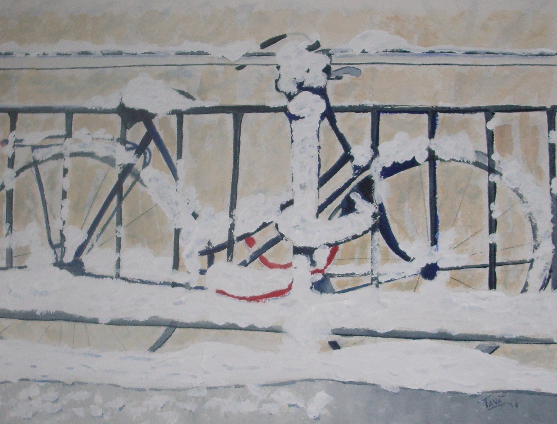 Fiets Aquarel Acryl Sneeuw Realistisch