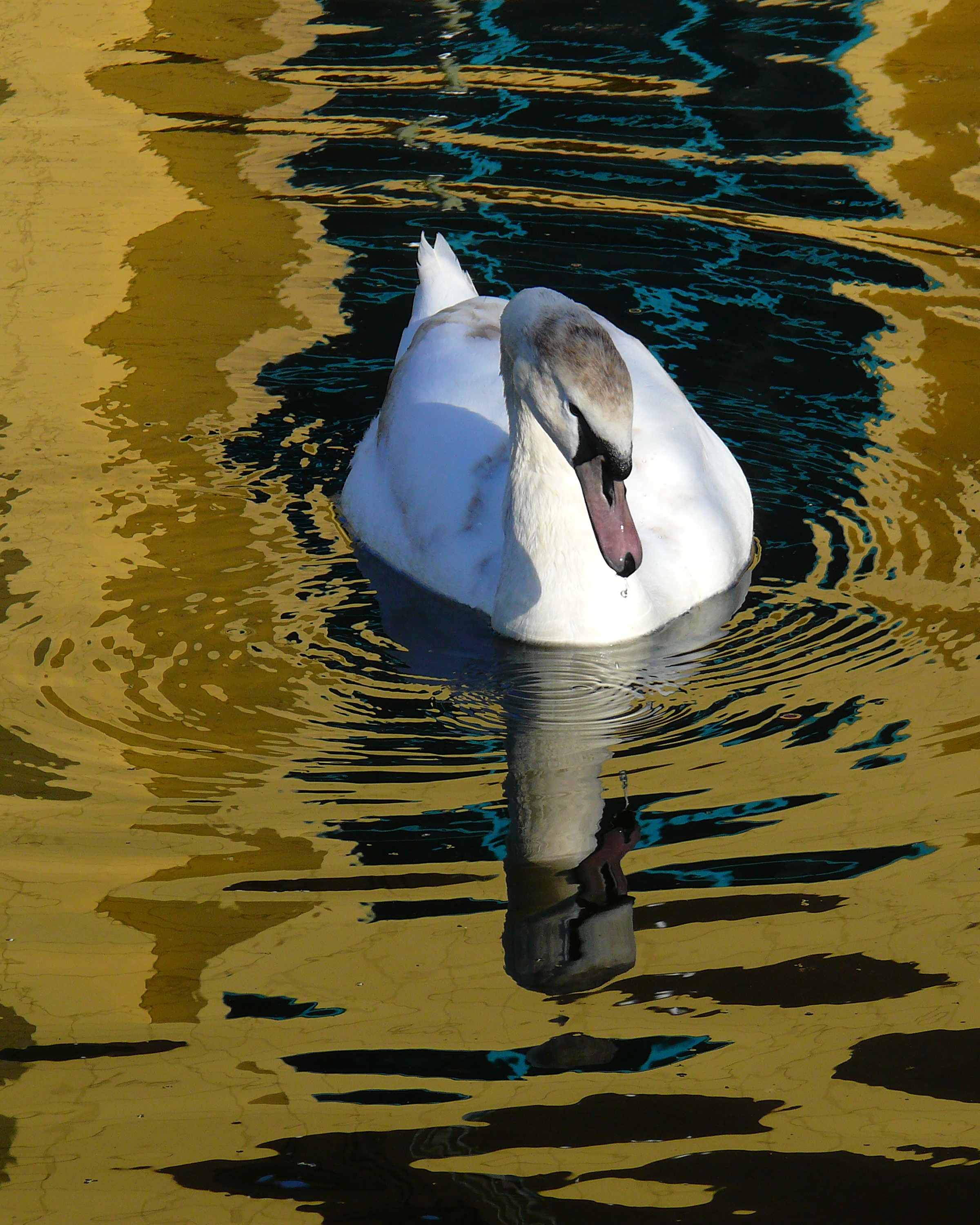 Geel Vogel Yellow Bruin Water Dier Brown Bird Zwaan Kleur Spiegel Mirror Swan Animal Color Reflection