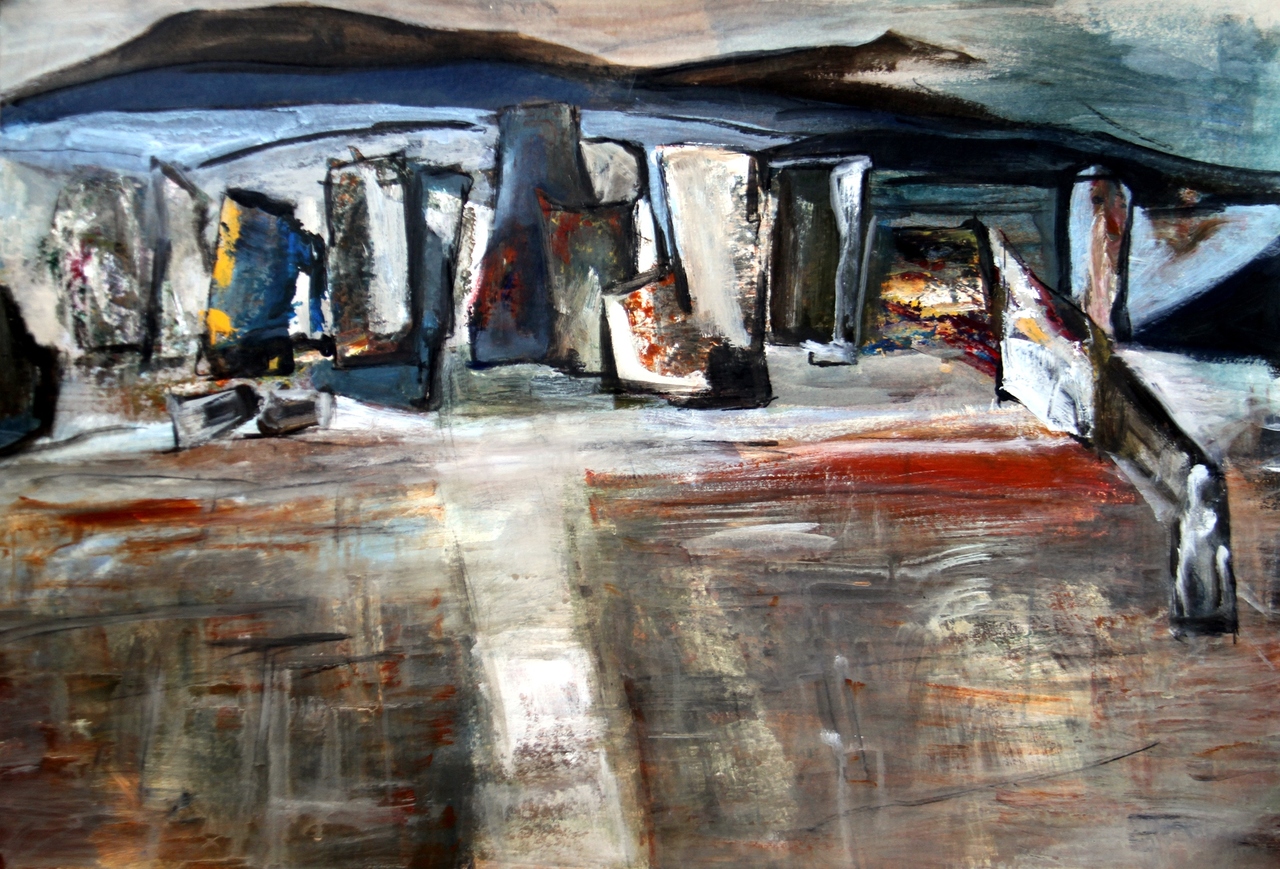 Landschappelijke abstractie, de sfeer evenaren alsof je in het landschap ondergaat. De prachtige kleurrijke IJslandse landschappen, het forum uit Rome, zwerven tussen prachtige bouwwerken of ineen gestorte tempels. Dit en nog vele mooie herrinneringen aan een voorbij gaan van omgevingen inspireren mij tot een verdere verdieping in abstracten, waarin schilderen is als vlakken herkennen, sferen treffen en de grilligheid van de verf te gebruiken.