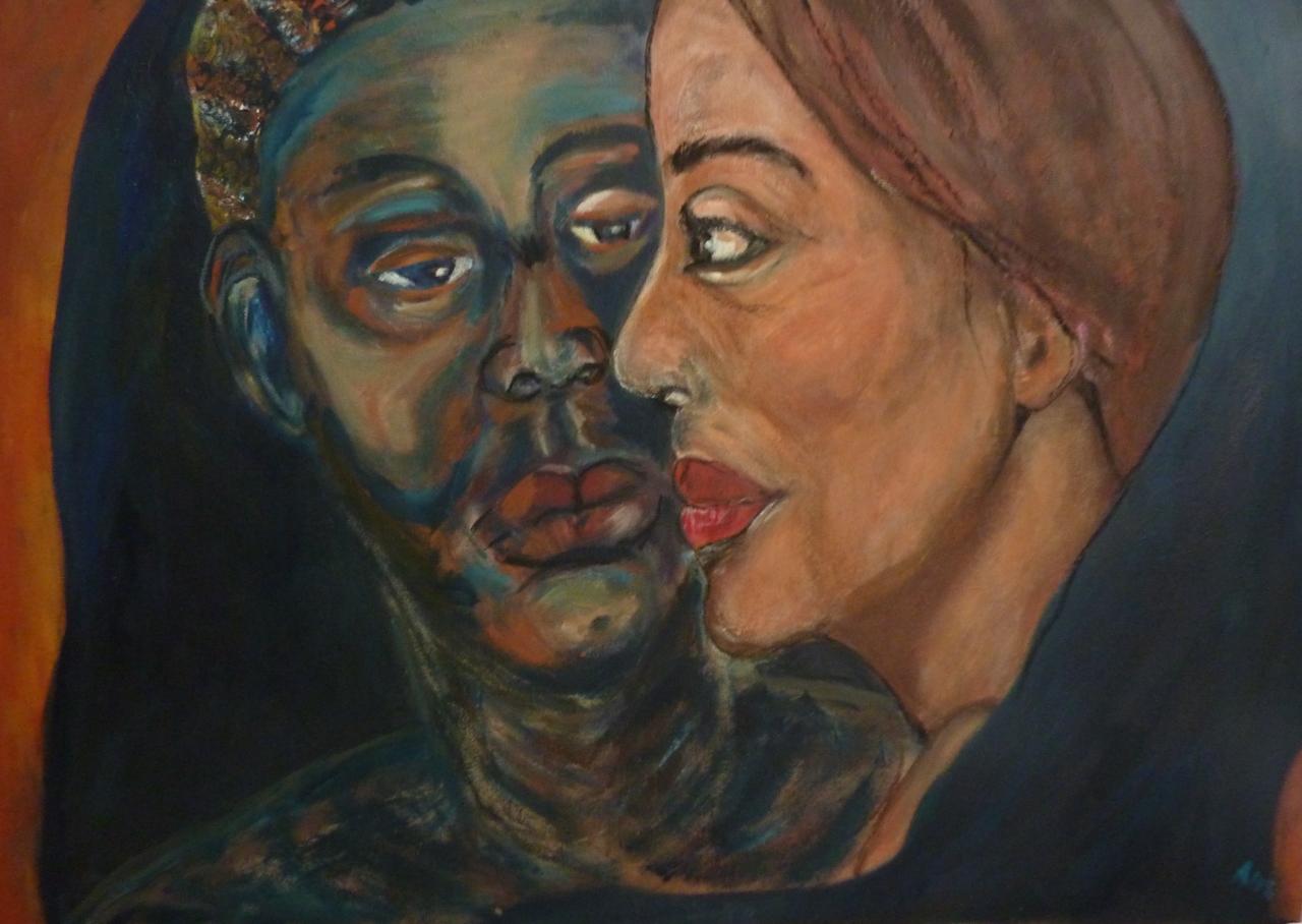 Gevangen In Een Relatie Gemengde Techniek Op Canvas