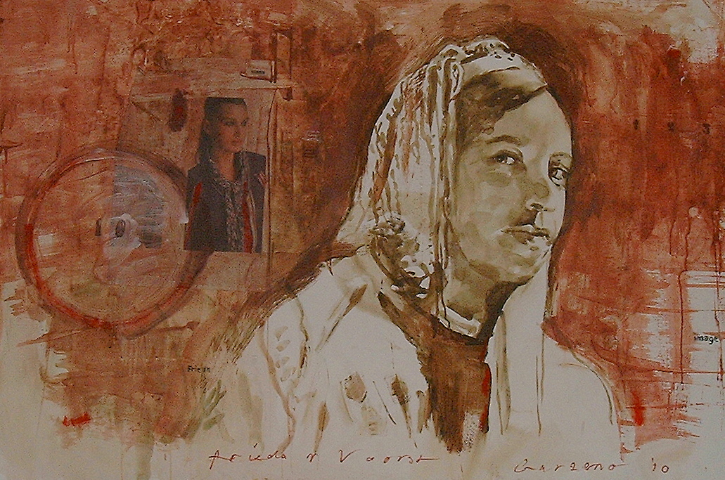 Ik woon en werk in Noord Italie,in het bergdorp Garzeno boven het Como-meer. Mijn schilderijen kenmerken zich door een combinatie van figuratie en abstractie. Grafische elementen, foto's, tekst,collages van stukken krant vormen een essentieel onderdeel van de totale compositie.