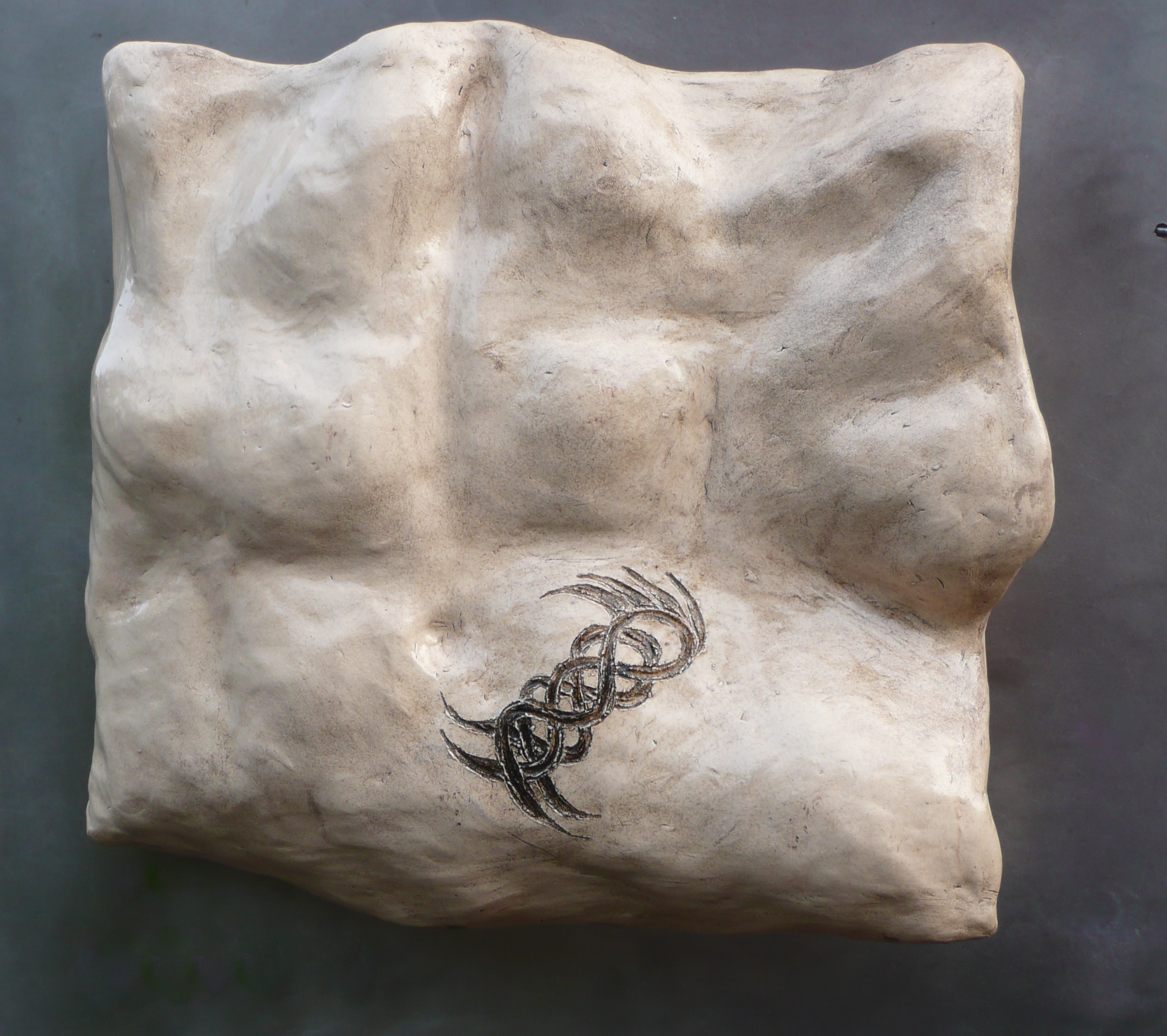 Ik maak torso's, ik versier de huid met tattoo's, kijk onder de huid naar spieren, en wat er over die huid gedragen kan worden. Iedere verandering, roept direkt een indruk op, over de persoon achter de torso. Diverse materialen, keramiek, metaal.