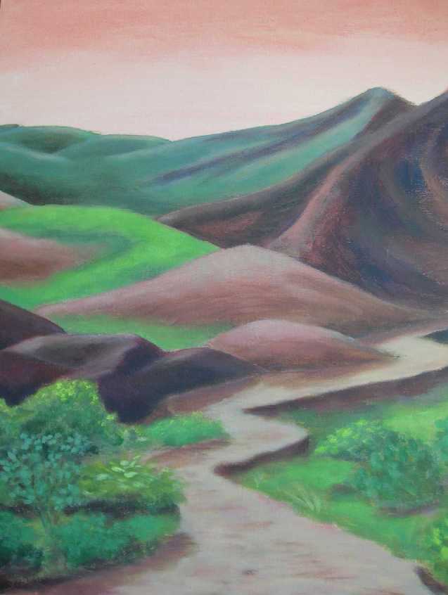 Figuratief Landschap Acryl Groen Green Roze Landscape Figurative Pink