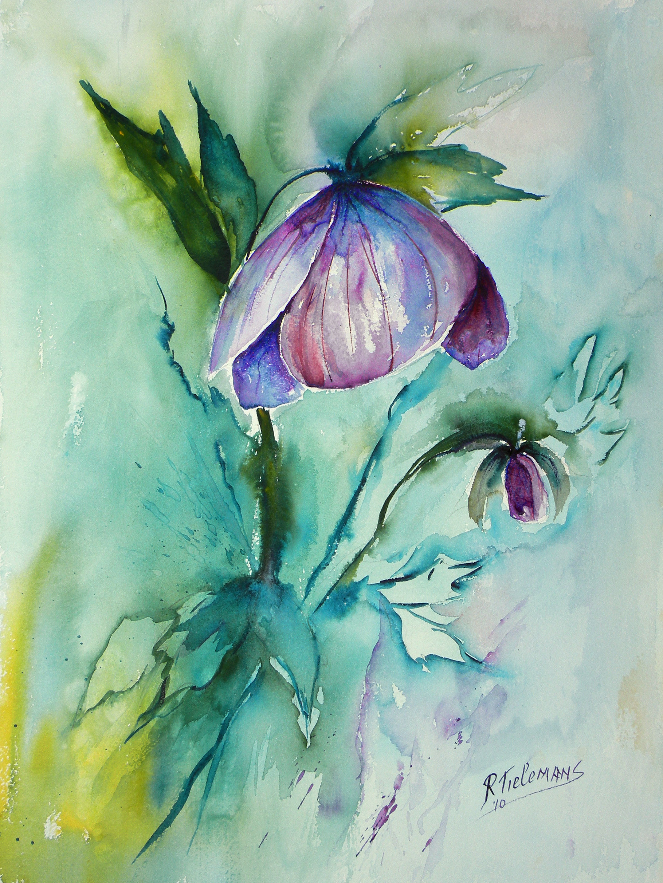 Geel Blauw Yellow Paars Groen Blue Aquarel Bloem Green Stilleven Purple Flower Still Life Watercolour Helleborus