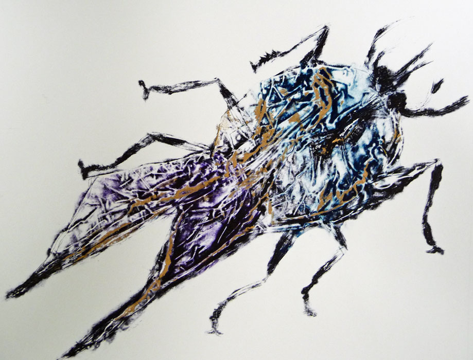 Kleurrijk Grafiek Insect Droge Naald Drypoint Collagraph