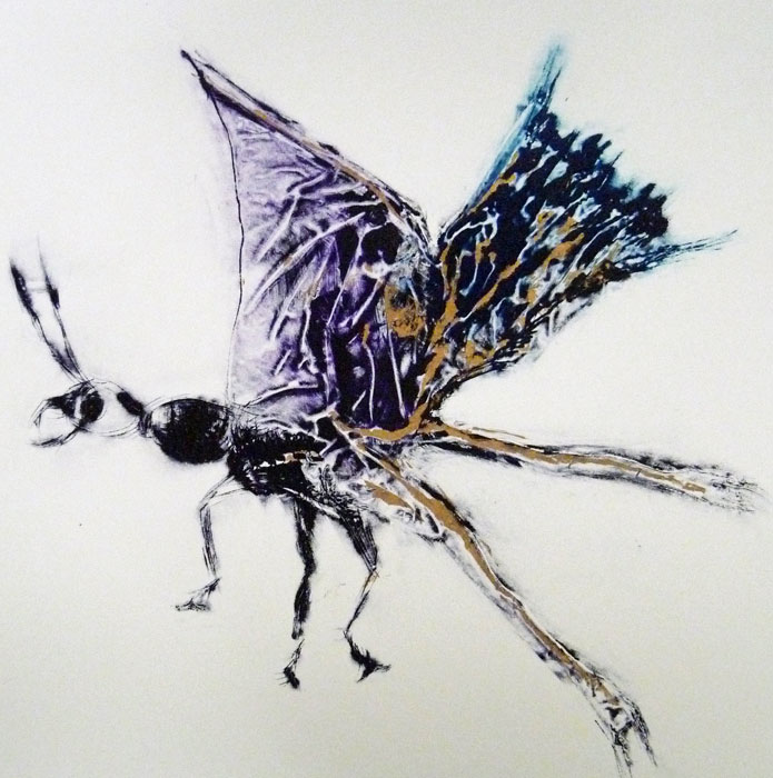 Collagraph Drypoint Droge Naald Insect Kleurrijk Grafiek