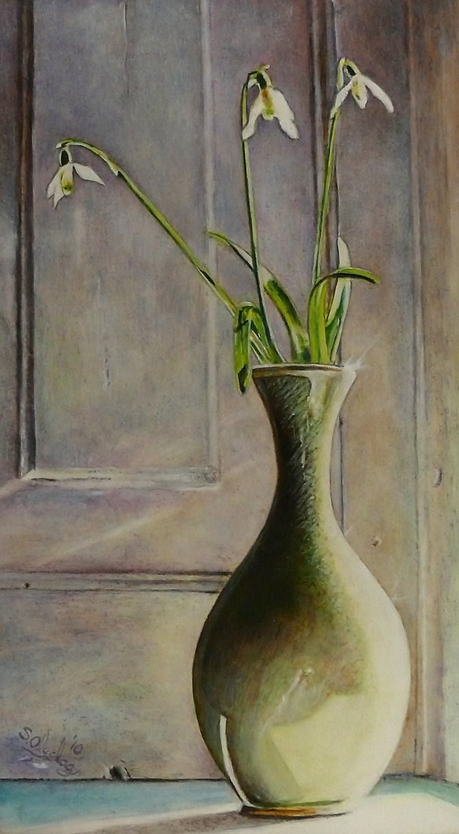 Bloem Bloemen Wit Paars Groen Realistisch Figuratief Sneeuwklokje Lente