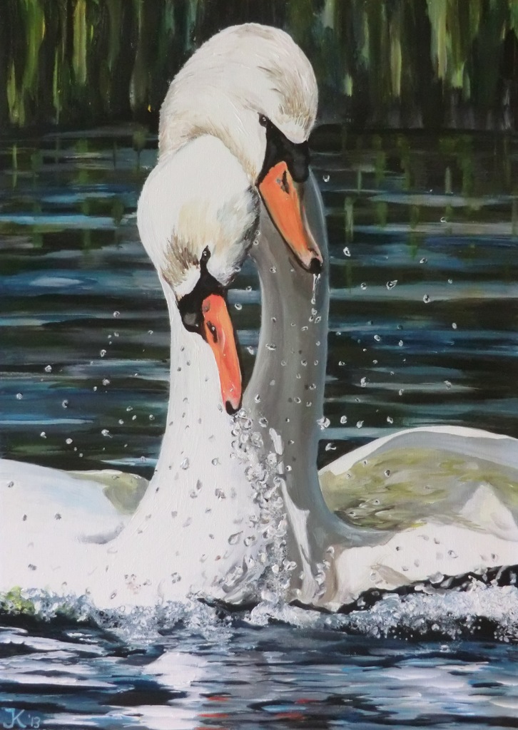 Twee baltsende zwanen .