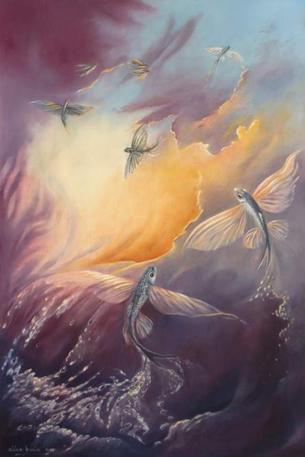 De techniek van de oude meesters gebruik ik om mijn visionaire ideeën vanuit spiritueel inzicht in fijnschilderwerk in olieverf uit te beelden. Dunne glacerende lagen geven het werk een transparante glans. Centraal in mijn werk is het licht en het geheim van het bestaan van de mens. Liefde, natuur, muziek en dans, meditatie en een opmerkelijk boek brengen mij volop inspiratie.