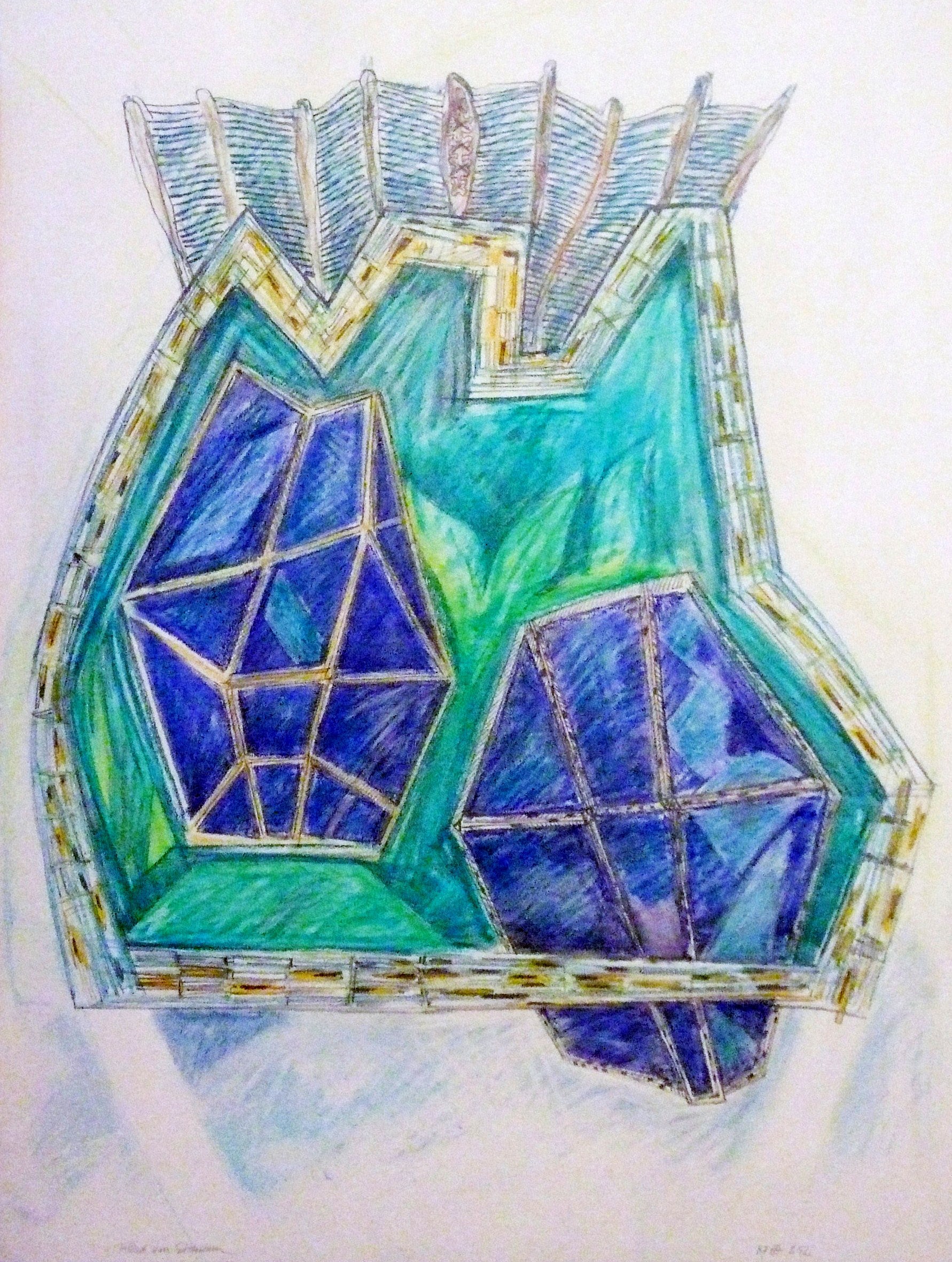 Kristallen 2 Groot formaat tekening: potlood en pastelkrijt.