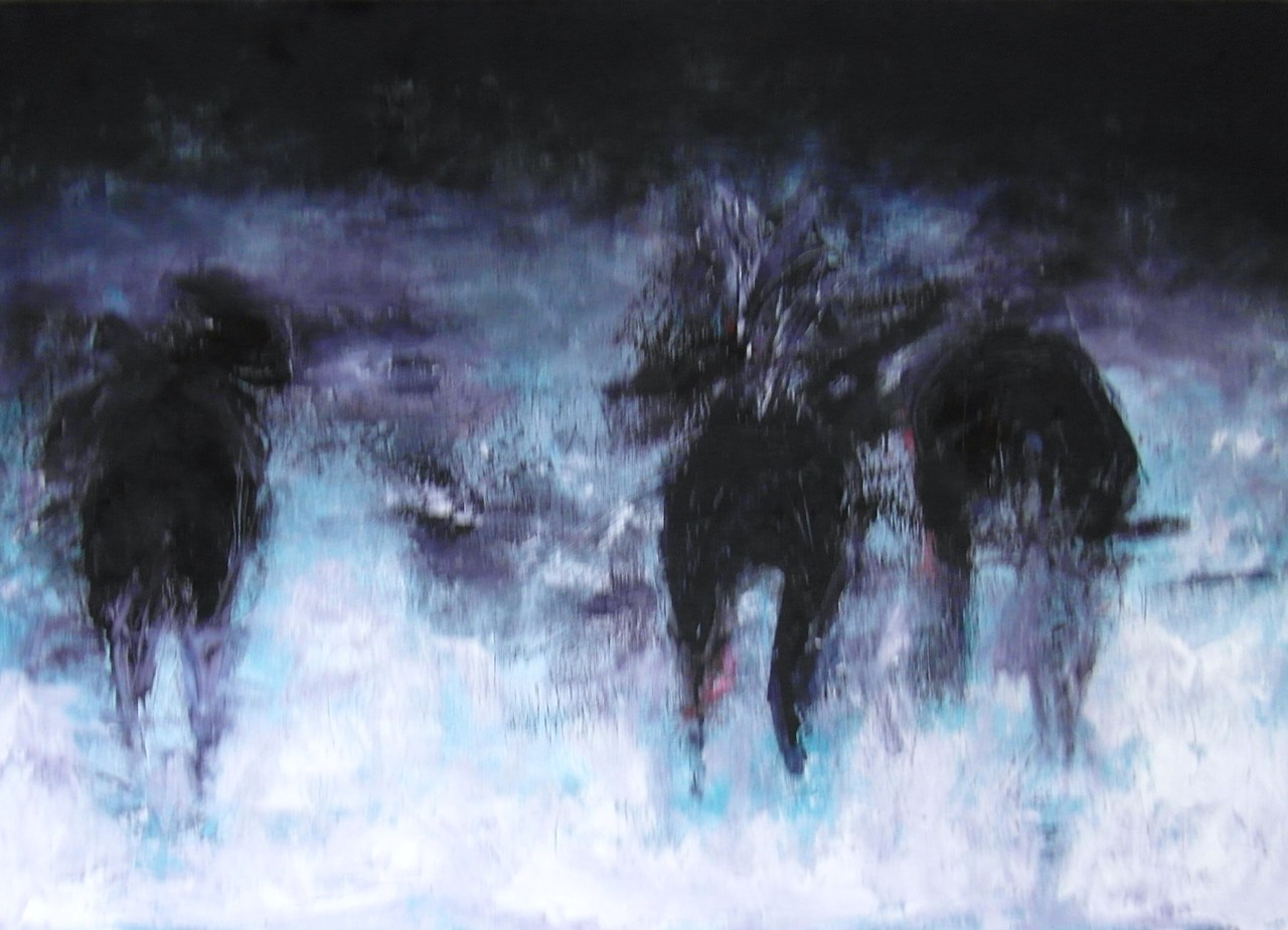 Al schilderend m'n weg volgen... ontmoetingen en samenzijn met zowel mens als dier liggen aan de basis van deze abstracte werken. De 'kriebels' om te gaan schilderen had ik al héél lang. Meermaals heb ik op het punt gestaan om me hier of daar in te schrijven, maar daarvoor was m'n leven te druk op dat moment. Pas in 2006 was het eindelijk zover! Aan de Academie Arendonk ging een droom in vervulling.