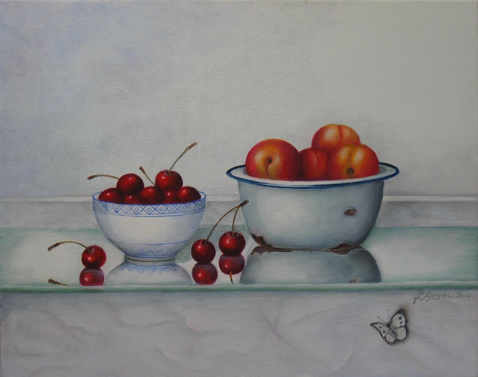 Realistisch Paneel Olieverfschilderij Kersen Perziken
