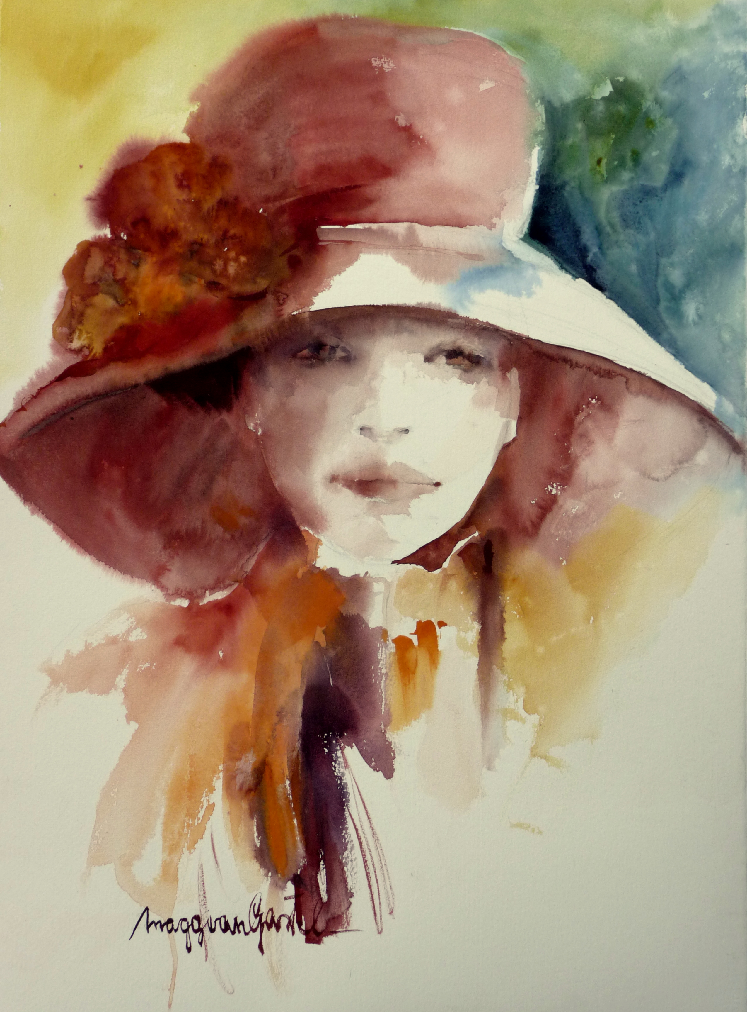 Vrouw Figuur Aquarel Hoofd Hoed Dame
