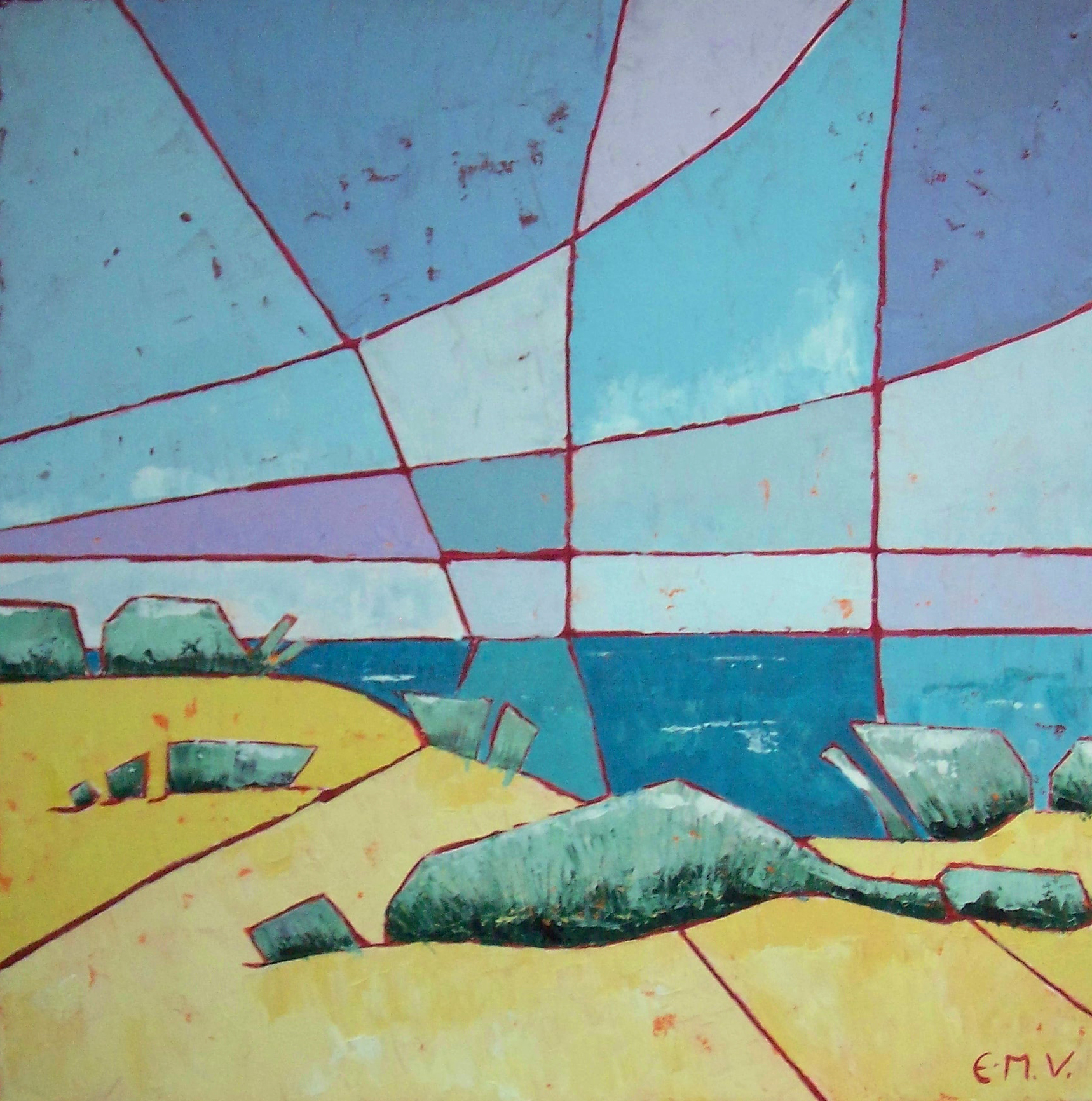 Zee Geel Landschap Blauw Duinen Mozaiek Fragmentatie