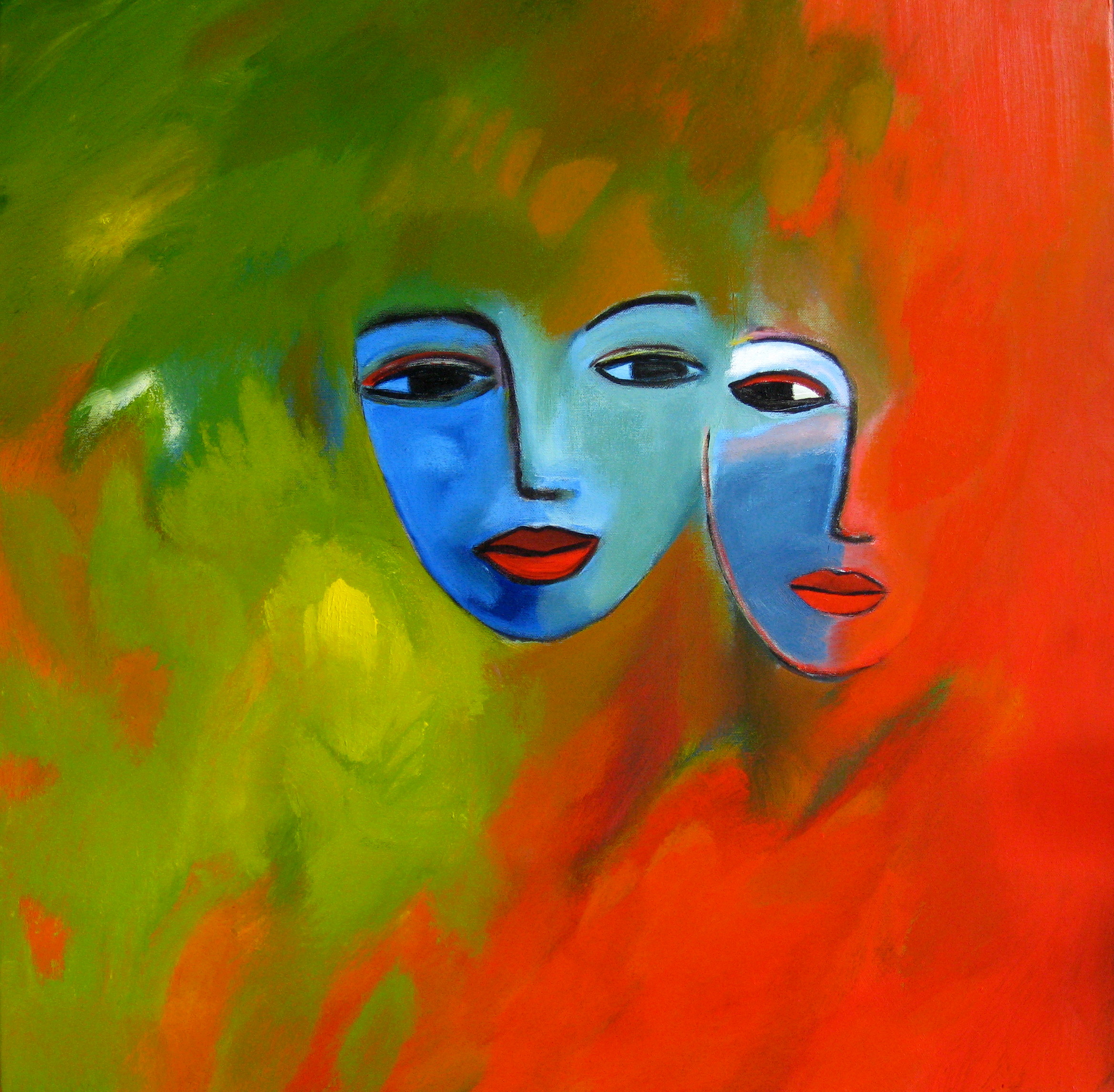 Schilderij Rood Groen Blue Painting Red Mond Lippen