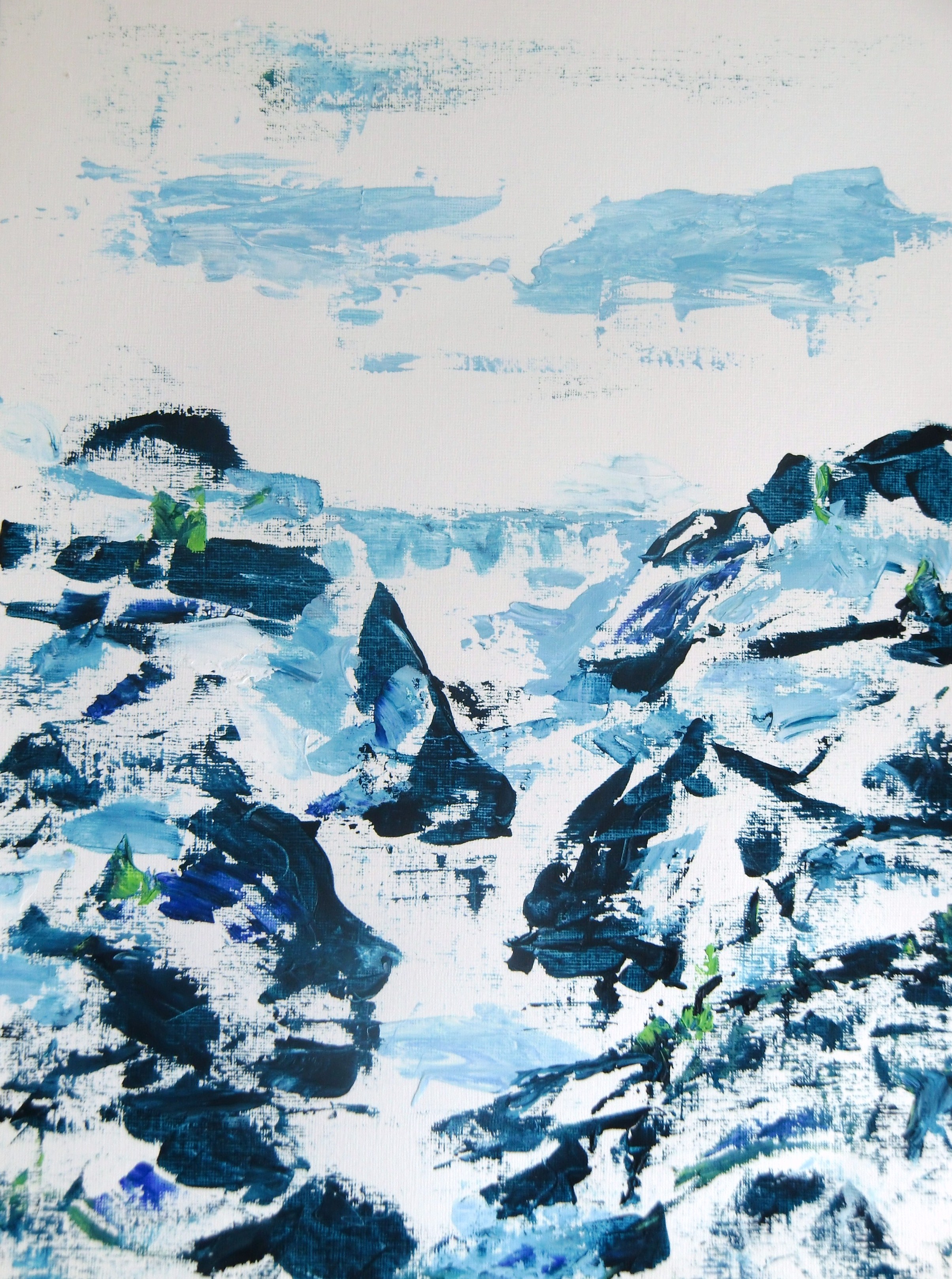 Wit Blauw Acryl Blue Papier Op White On Paper Rotsen Impressionistisch Rocks Impressionistic