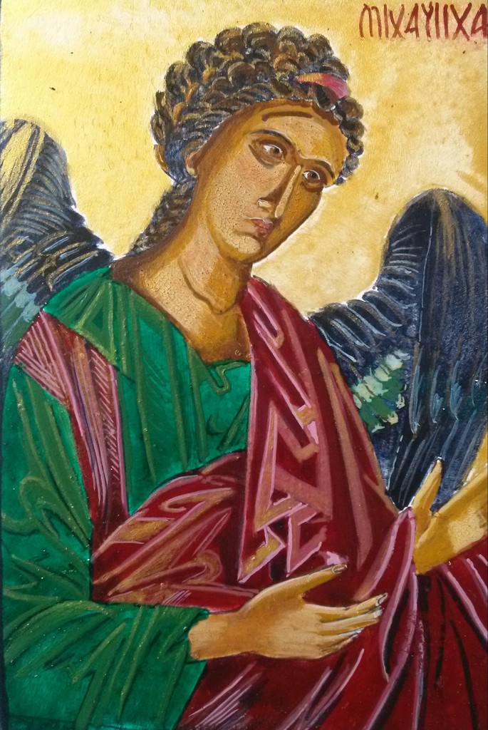 Engel Rood Groen Blauw Tempera Oudentechniek