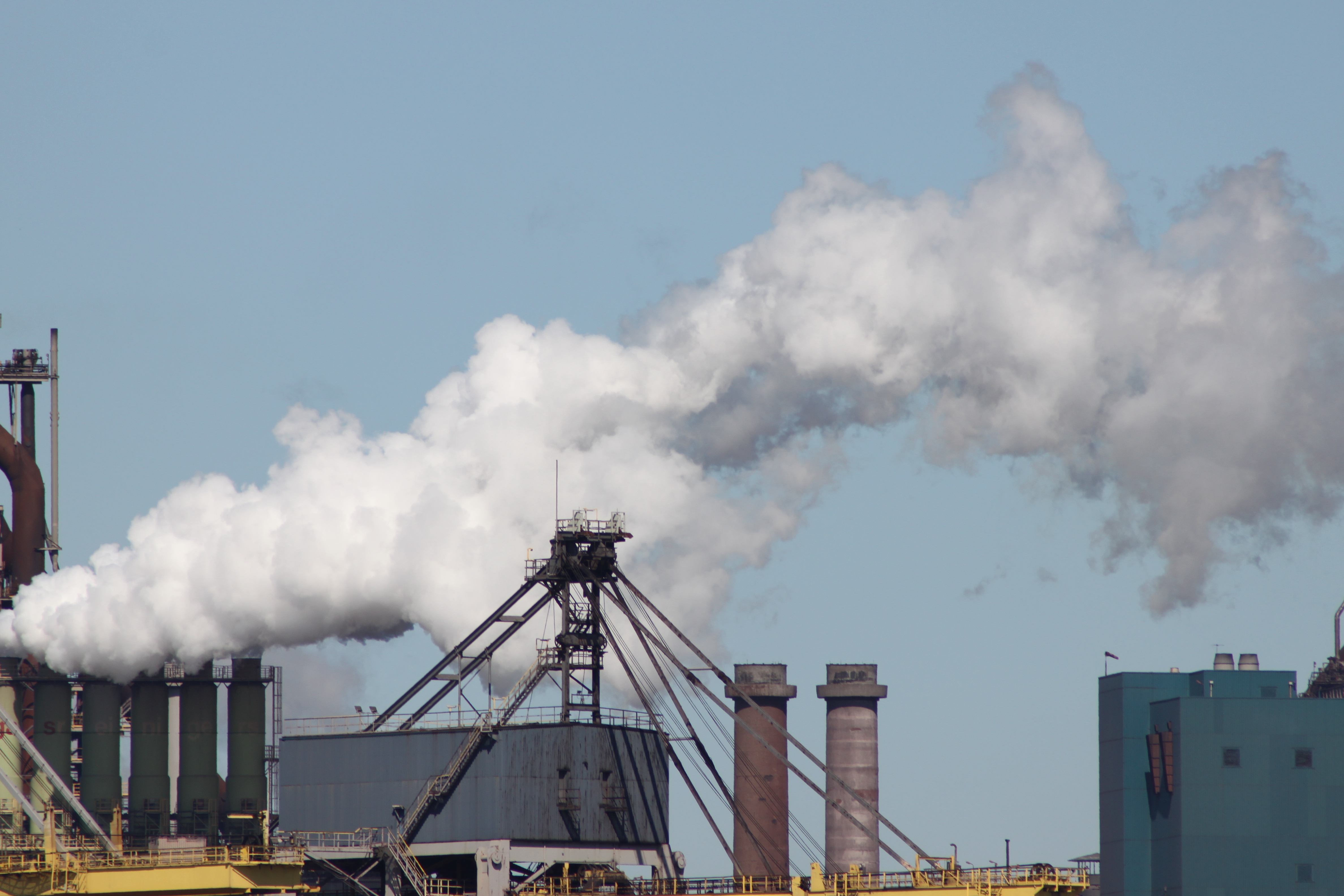 Zicht vanaf de pier in IJmuiden op de Hoogovens