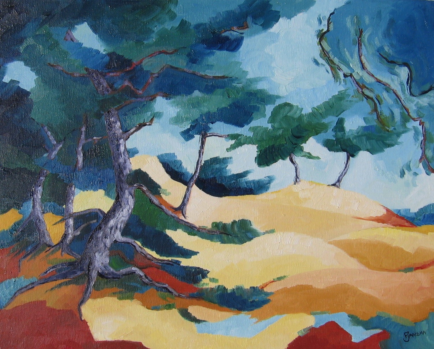Fred Jaarsma vertrok twaalf jaar geleden vanuit Apeldoorn naar Zuid Frankrijk waar hij zich als kunstschilder vestigde in de Ardèche. In Nederland exposeerde hij in verschillende plaatsen in het land. De Nederlandse periode was vooral een zoektocht, waarin verschillende stijlen zich afwisselden. De jaren in Frankrijk laten een verschuiving zien naar gestileerde landschappen en symbolistische schilderijen. na veertien jaar Frankrijk vertrok Fred eind 2014 naar Duitsland, om zich te vestigen in het pittoreske Uelsen nabij de Nederlandse grens. Binnenkort kunnen we de eerste werken vanuit de nieuwe omgeving tegemoet zien!