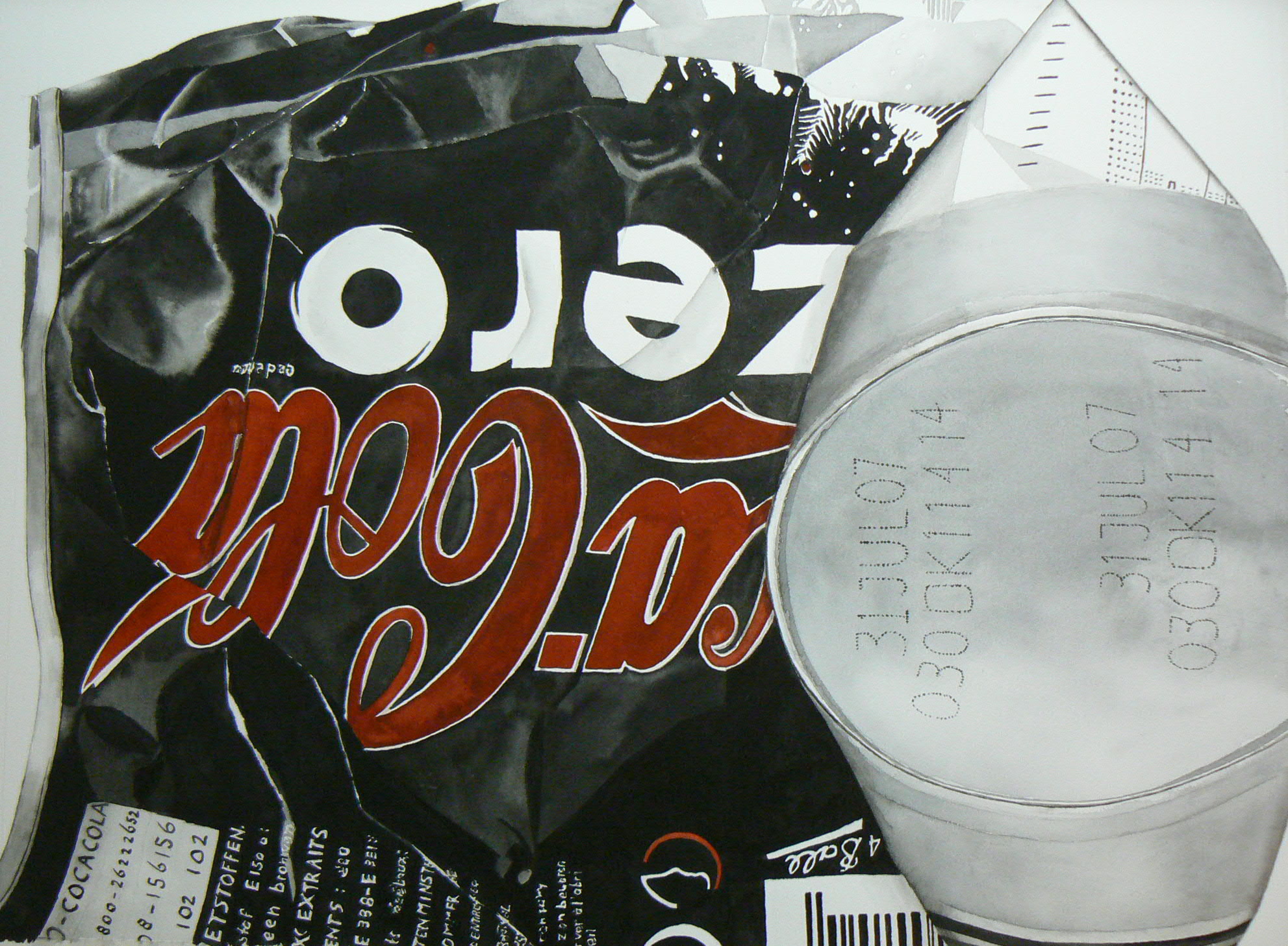 Een verkreukeld Cola blikje (maten in lijst zonder passepartout).