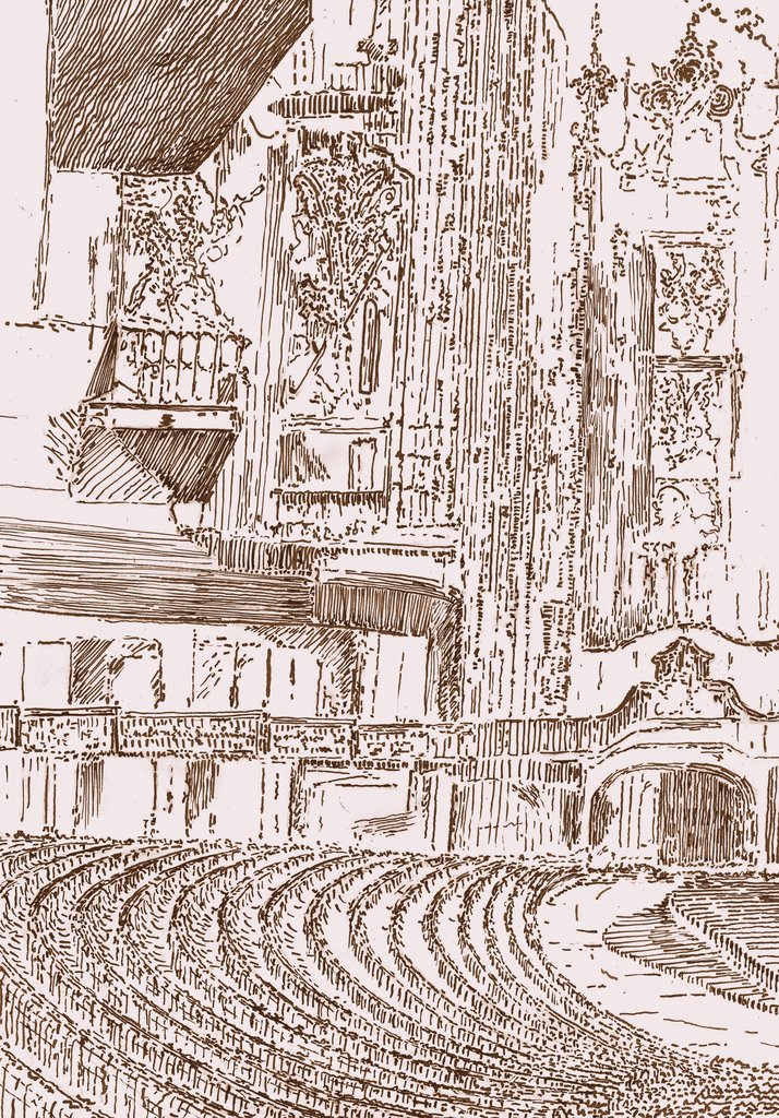 Tekening gebaseerd op een rijk versierde theaterzaal in Russische stijl