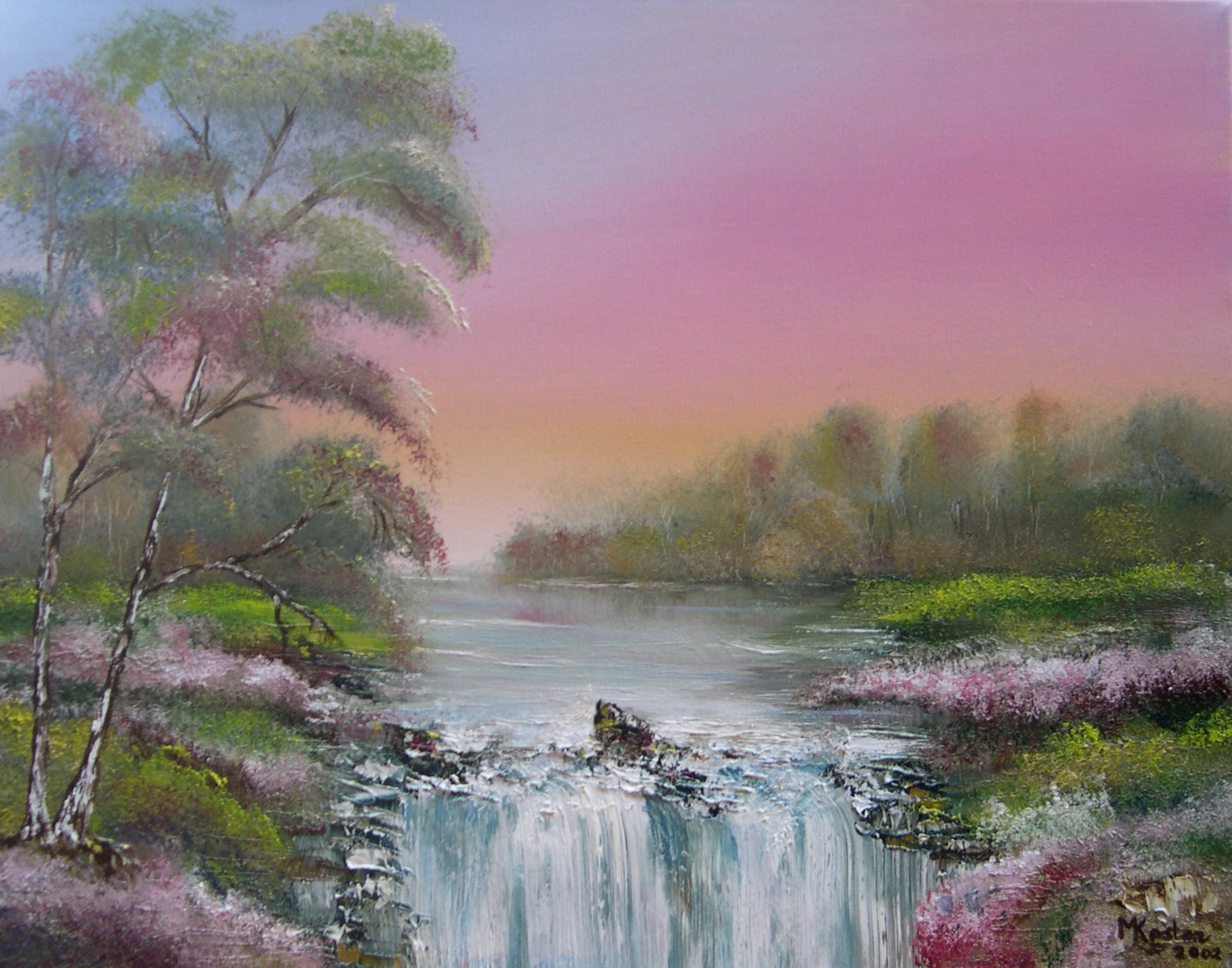 Landschap Aquarel Olieverf Waterval