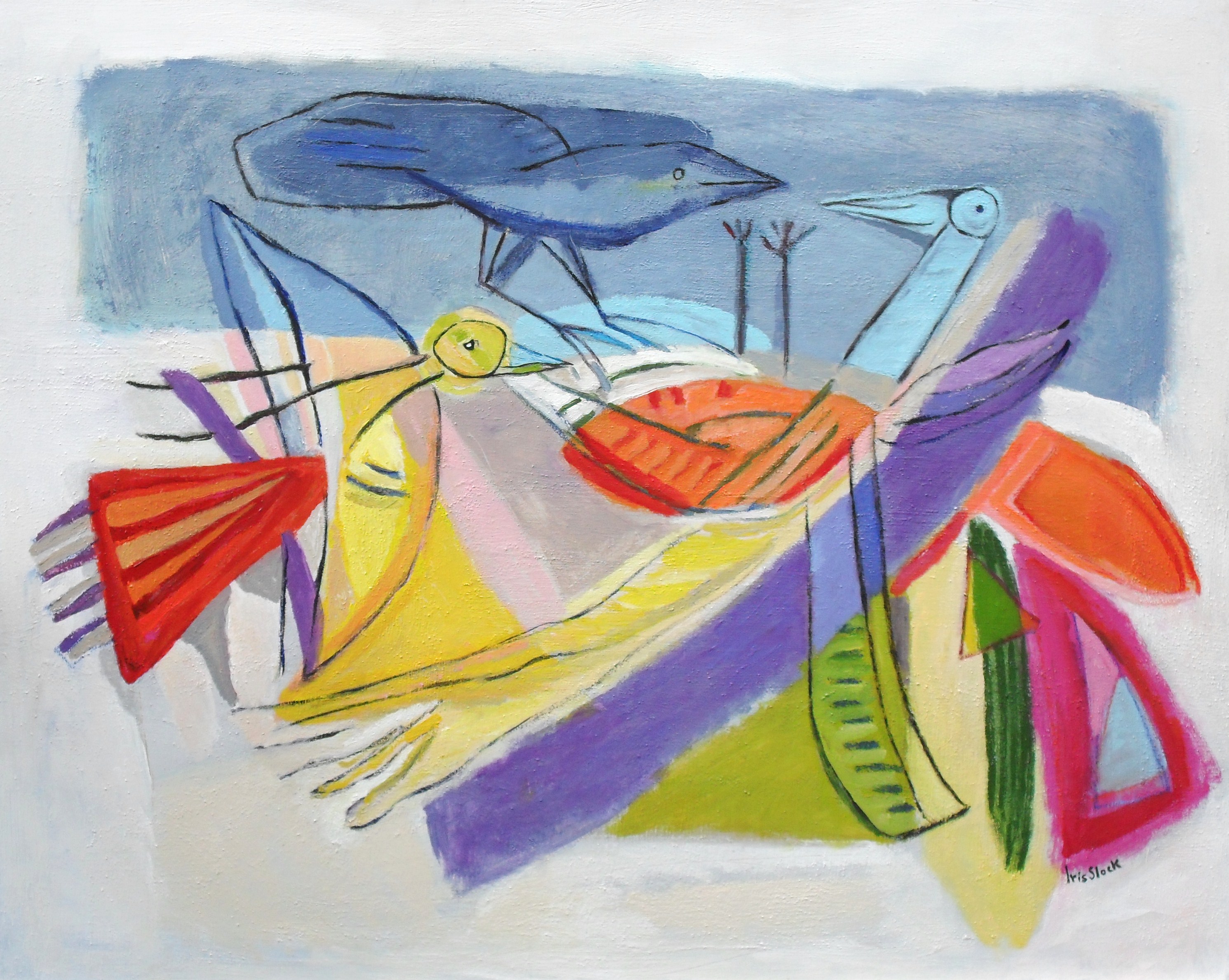 Modern Art Kleurrijk Kunst Moderne Vrolijk Birds Vogels Voorjaar Gay Coulorful