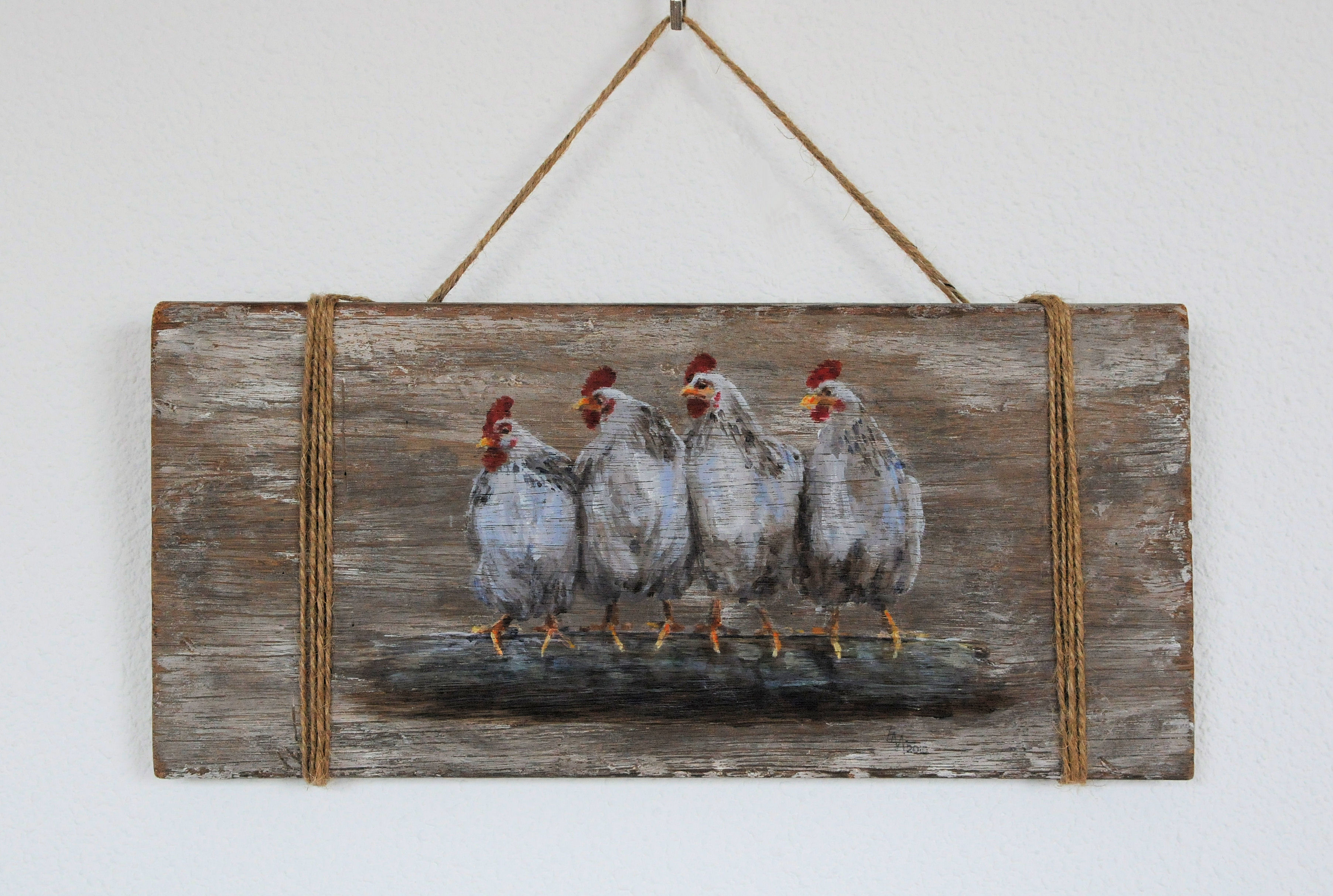Geschilderd in acryl op een plankje.