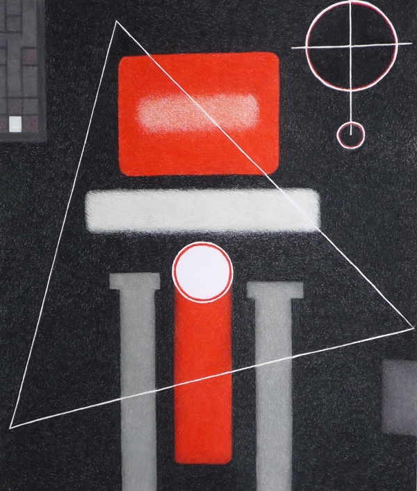 Kleurpotloodtekening Abstract Zwart Grijs Wit Rood