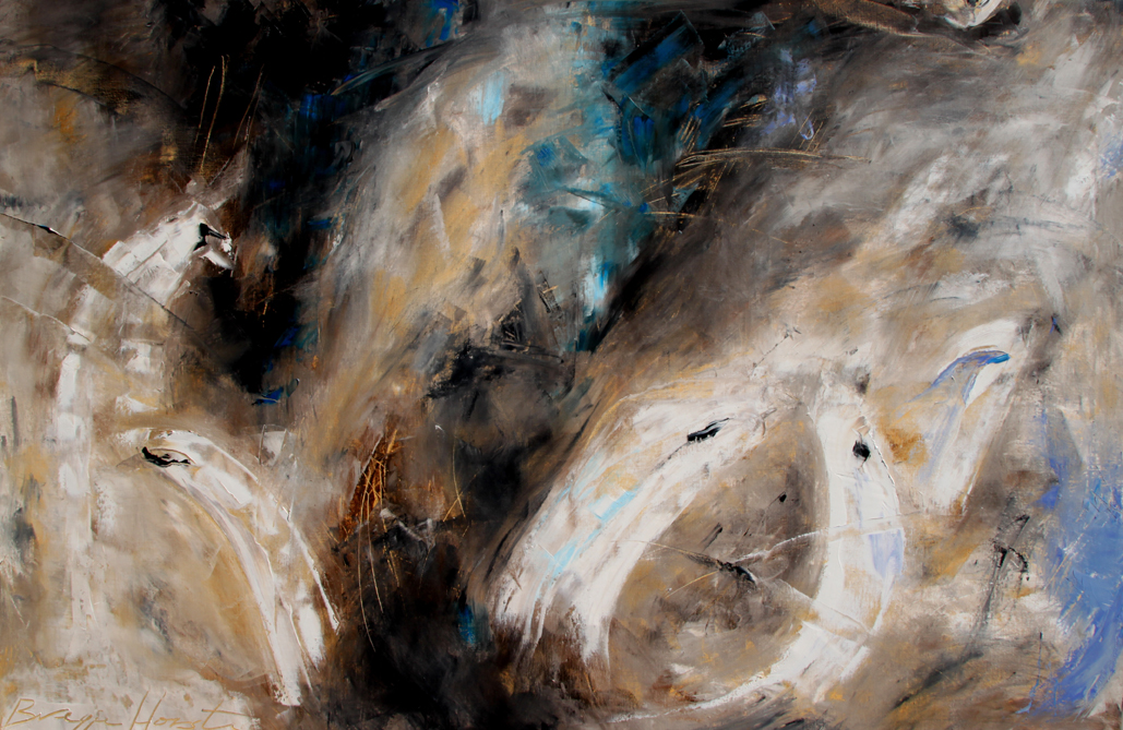 Bregje Horsten geboren in 1981 studeerde in 2004 af aan de kunstacademie St.Joost in Breda. Met een gemiddeld eindcijfer van een 9 studeerde ze in 2007 Summa Cum Laude af aan de Academie voor Beeldende Vorming in Tilburg. Bregje ontwikkelde een gepassioneerde en hedendaagse expressieve stijl. Geïnspireerd door de geneugten van dwalende gedachten. Op zoek naar balans in een ontdekkingstocht van verf en nuances. Ze creëert dynamische complexe composities die een continue spanning weten vast te houden. Haar kunstwerk is meer een spiegel of beschouwing dan een definitie. http://www.bregjehorsten.com/