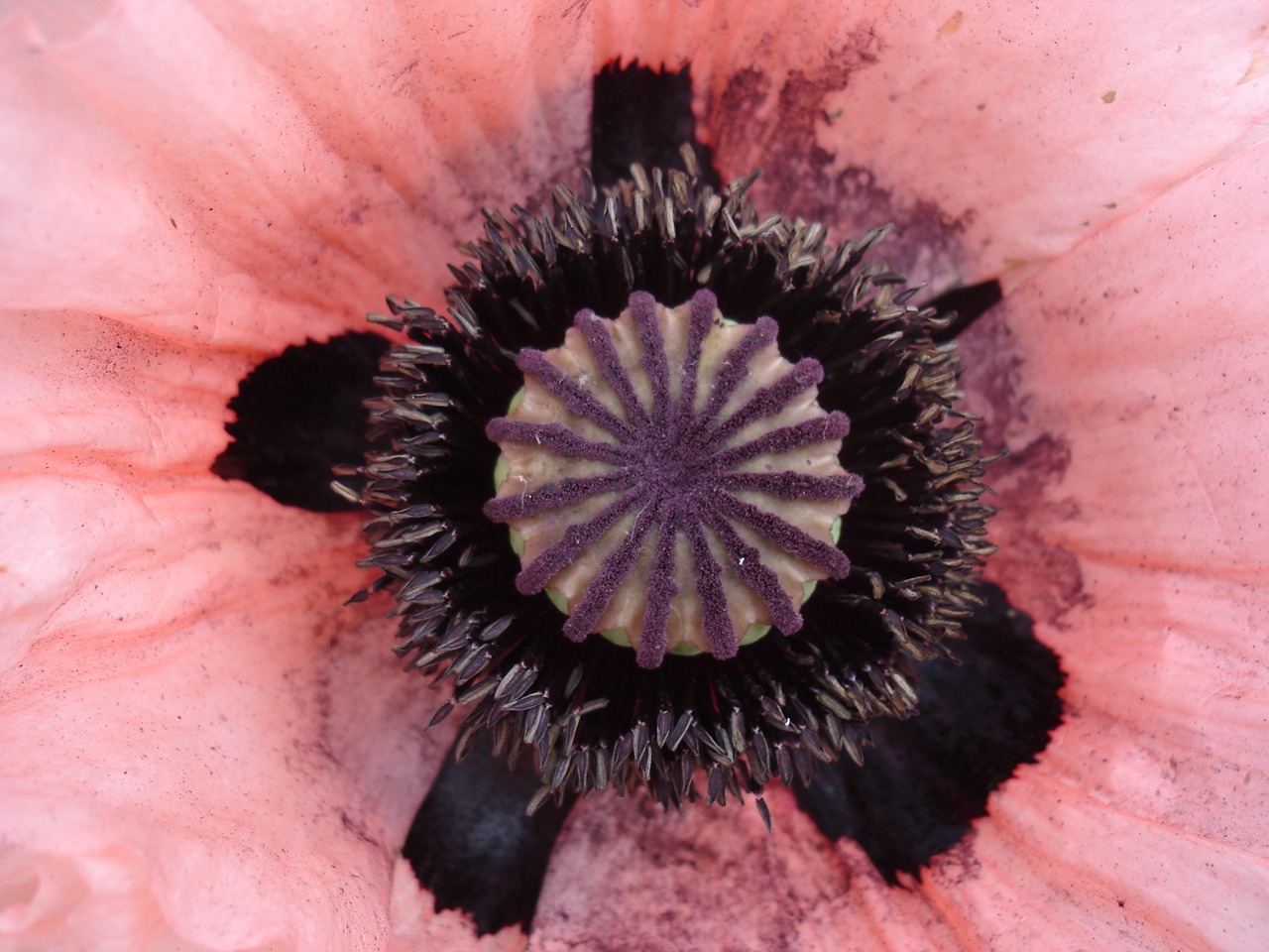 Vol met stuifmeel dat in het hart van deze papaver rijkelijk vloeit.