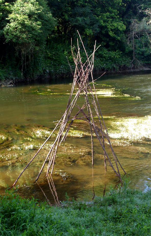 Bospoort met natte voeten de kruin omhoog de poort naar het bos. ism Mirjam Korse.