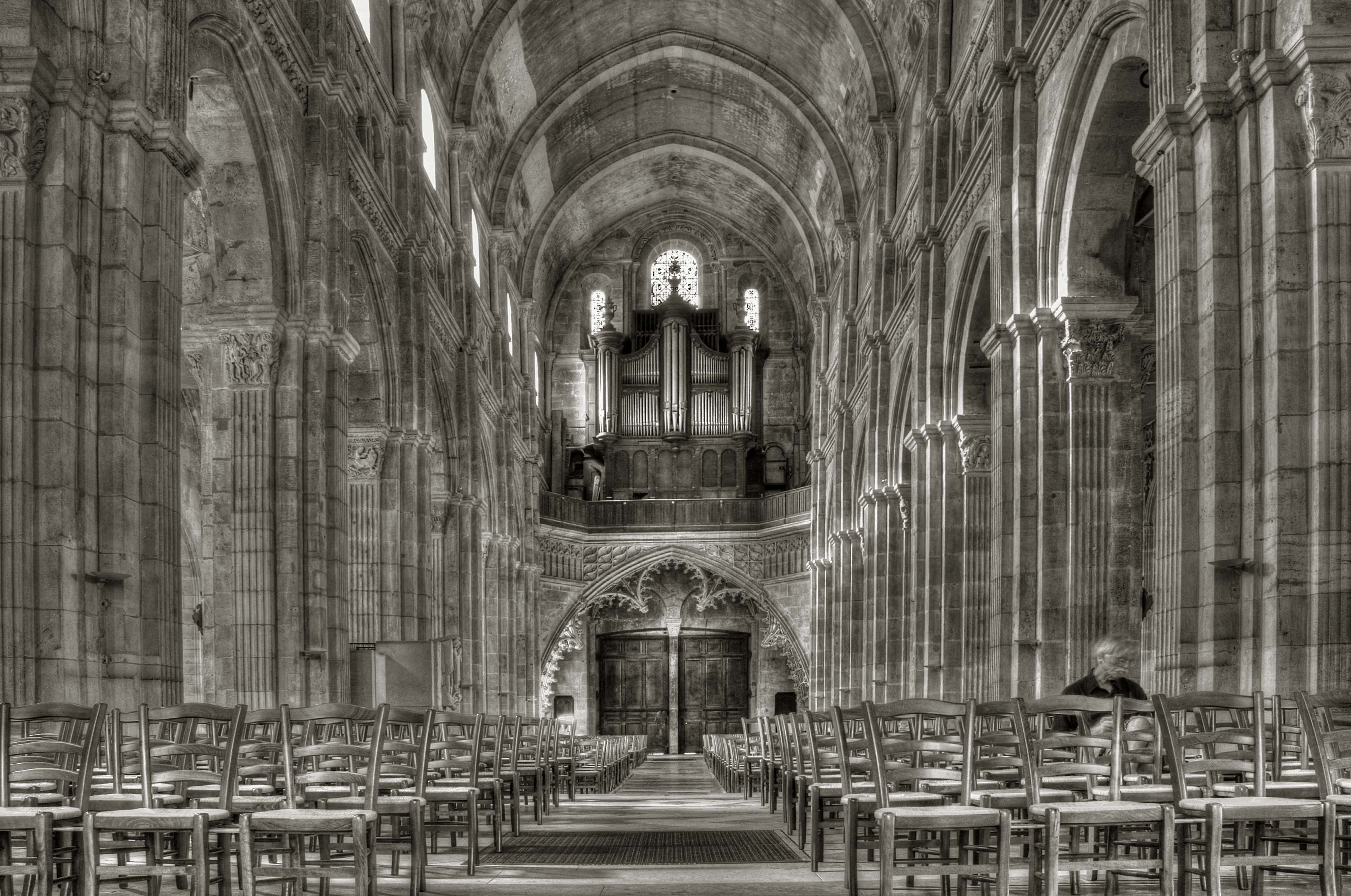 Interieur Kathedraal St LAzare in Autun, kijkend naar "achteren"