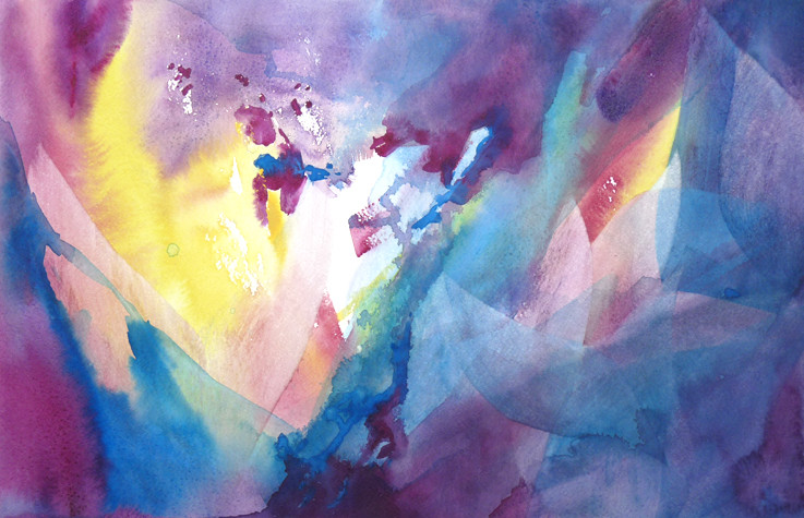 Tijdens het wandelen in de tropische bossen van Nieuw Zeeland raakte ik gefascineerd door het heldere felle zonlicht dat door de bomen naar binnen probeerde te dringen. Onder invloed van die lichtval zag ik ‘sprankelende kleuren’ (o.a. een heldere blauwtint).
