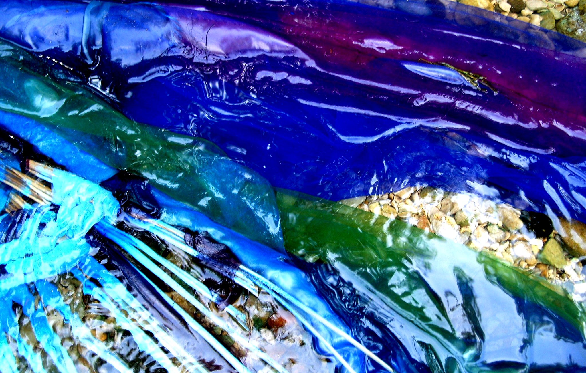 Steeds weer verandert het water de kleuren en vormen van de liggende poort in de Dordogne.
