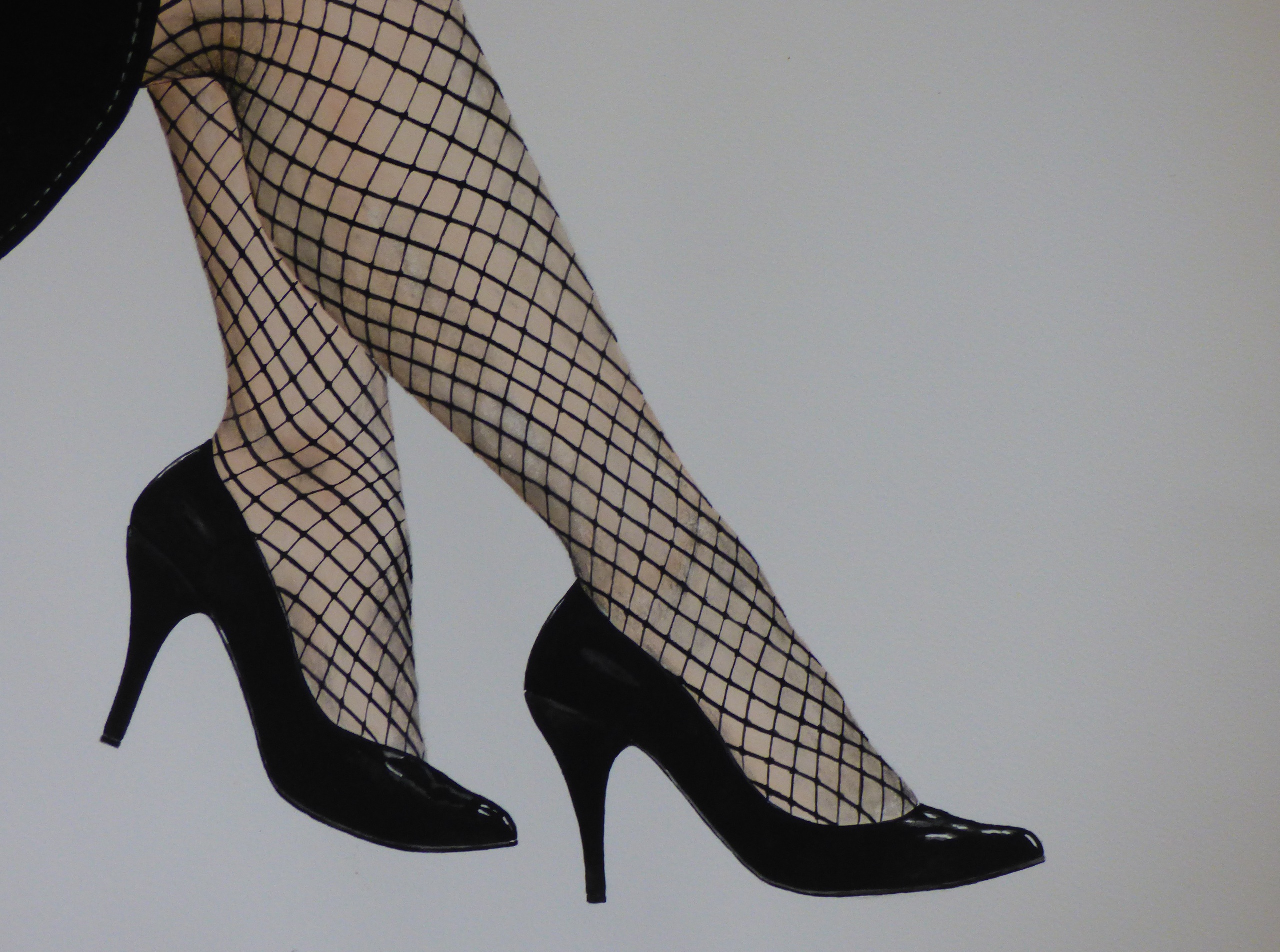 Mooie zwarte pumps en netkousen. Dus patronen en glans/schaduw. Alle prijzen van aquarellen zijn inclusief de lijst en passepartout.