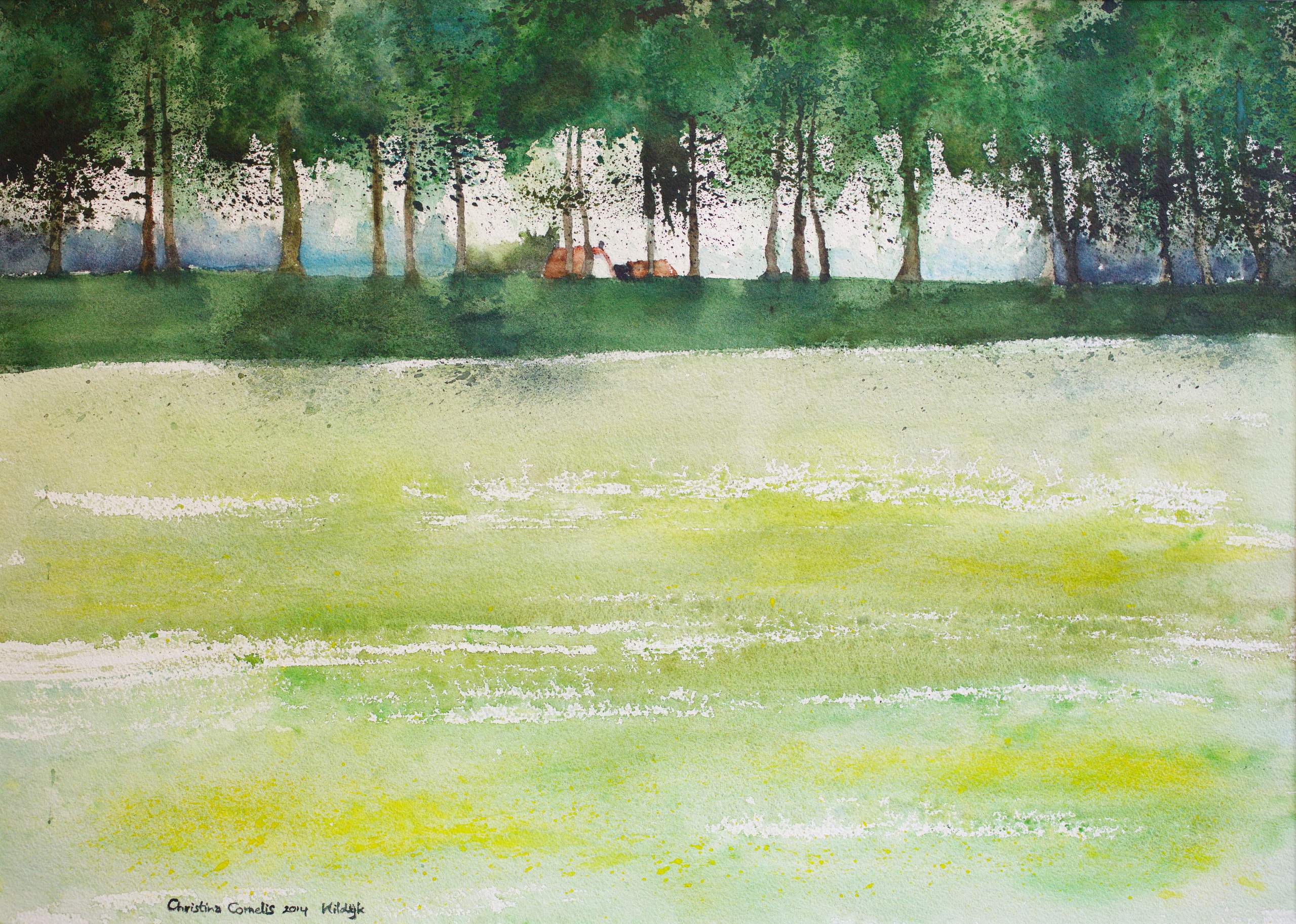 Dit schilderij van de Kildijk in Retranchement maakte ik tijdens de workshop van Xavier Swolfs in Cadzand. Ingelijst met passepartout.
