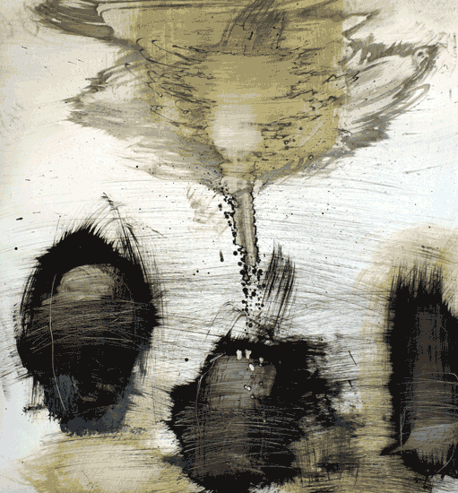 Het witte doek schrikt mij niet af. Daar creëer ik heel intuïtief een eigen wereld en komen mijn gevoelens en gedachten samen op het papier door middel van kleur, vorm en lijnen. Een eigen vormentaal en een sfeerbeeld van mijn eigen ik. Sfeer is belangrijk, beelden die emoties teweegbrengen. Ik gebruik mijn materialen heel intuïtief en ze komen gelaagd op het werk- vlak. Heel spontaan worden de kleuren, vormen en lijnen gebruikt vanuit een buik gevoel. Het is een spannend gebeuren om het werk laag na laag op te bouwen tot een esthetisch beeld. Het maken van een werk is bij mij telkens een sprong in het duister. Als ik ermee begin weet ik nooit wat het gaat worden en wat de onderliggende gedachten en ideeën zijn. Ik stuur mezelf een richting uit, onbewust maak ik een beeld dat als ik h
